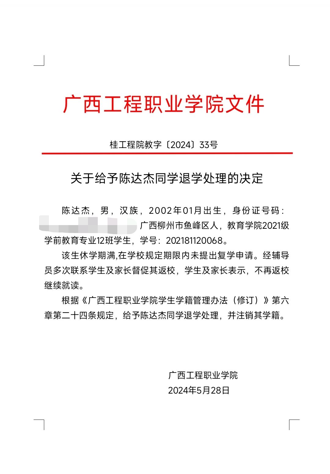 下一篇:關于給予盧麗秋同學退學處理的決定