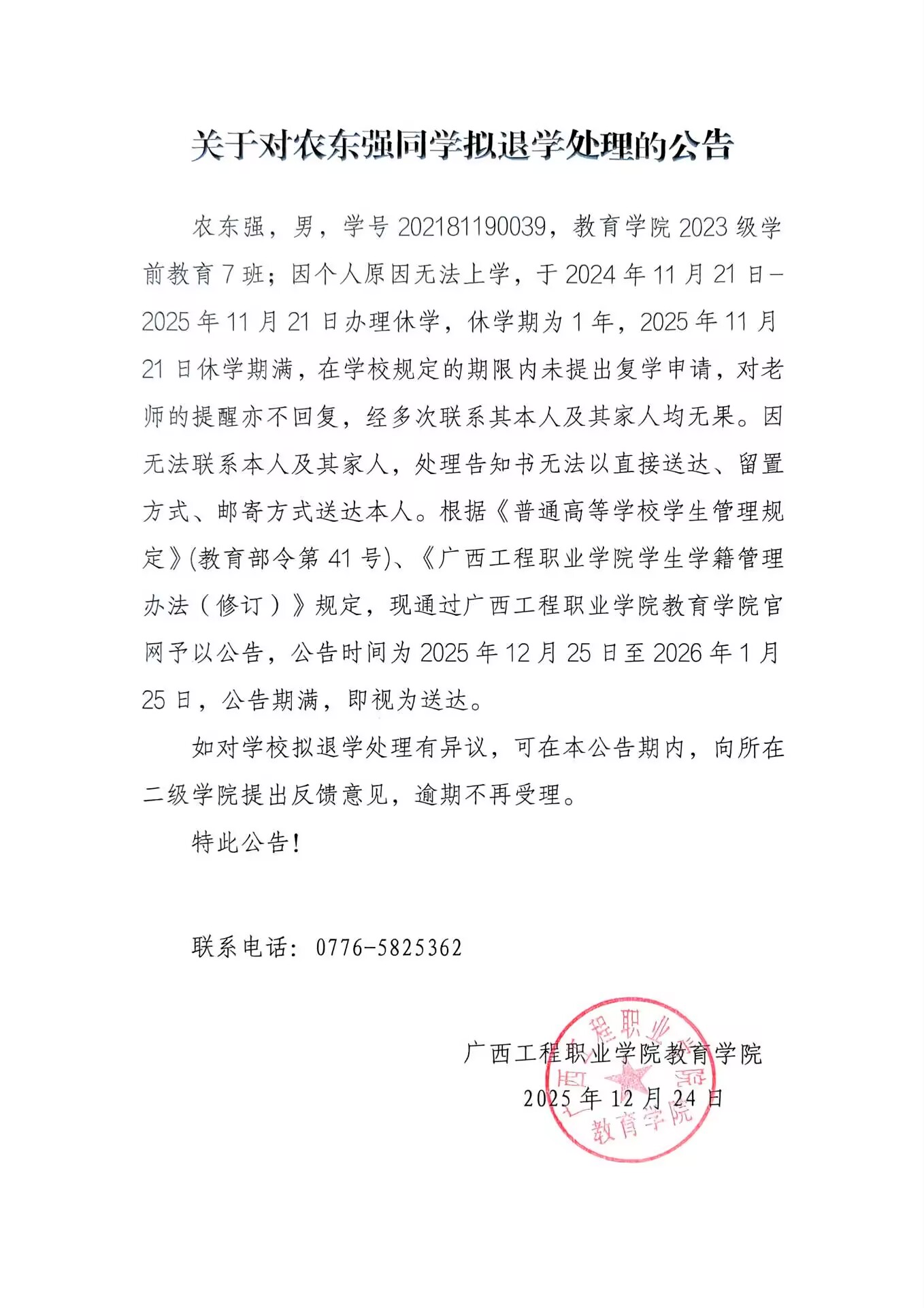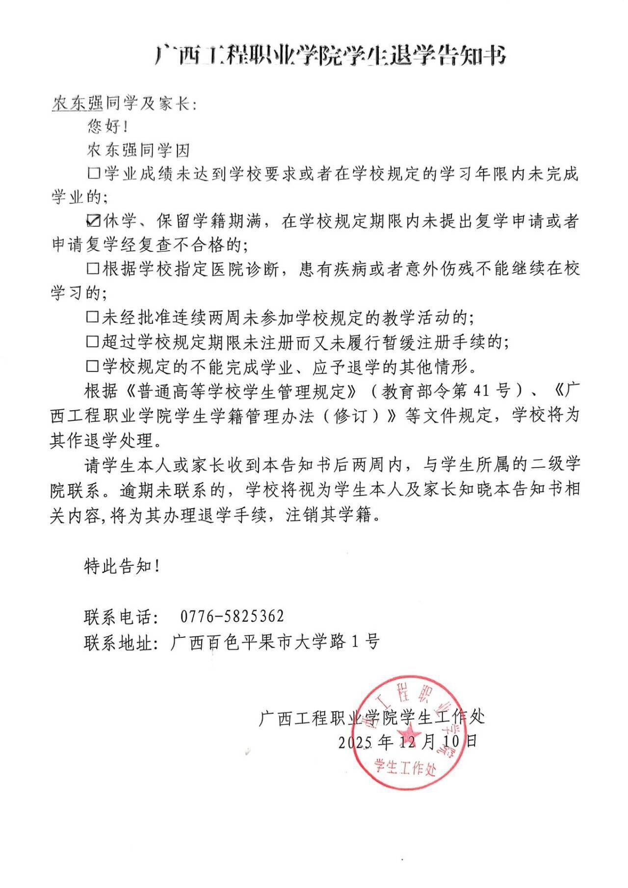 上一篇:關(guān)于對鄧鳳桓同學(xué)擬按退學(xué)處理的公告