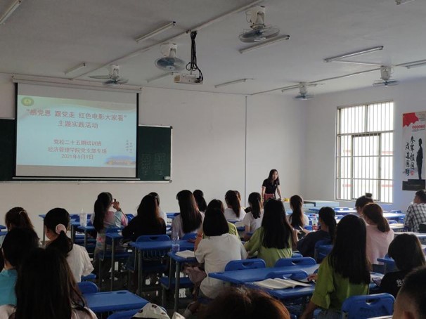 為慶祝建黨100周年,為弘揚愛國主義精神、構建和諧校園,豐富校園文化活動,使同學們懂得我們的生活來之不易,從而刻苦學習,同時展示全校師生熱愛黨、心向黨和濃烈的愛國情懷,增強廣大師生的愛國精神,2021年5月9日下午18:00,在支部書記廖嬌同志的組織下,支部組織第25期業(yè)余黨校培訓班全體學員于國防302教室進行“感恩黨 跟黨走 紅色電影大家看”主題觀看活動。