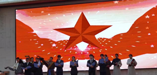 第三組參賽隊盧維瀅團隊13人朗誦的作品為《中國啊!我的中國》,歌頌了我們的祖國五千年的風雨,滄桑,共同譜寫了中華五千年的文化,作為中華兒女我們已經整裝待發(fā)共同譜寫中華新的篇章。他們結尾以結合來自西藏的同學進行收尾,體現(xiàn)出各個民族的團結一心。