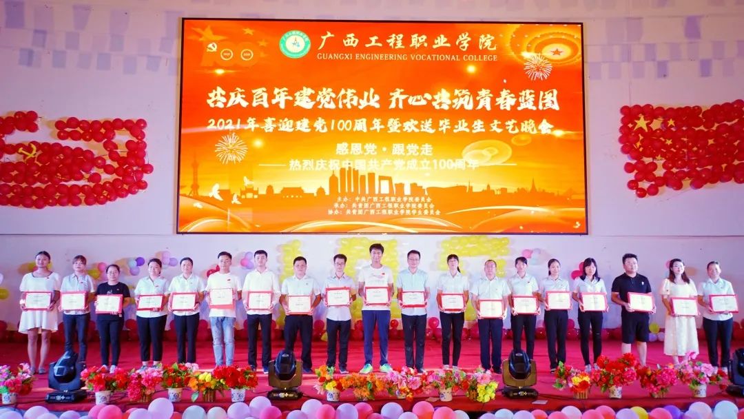 晚會上,學(xué)校黨委副書記、副校長胡細(xì)木宣讀《廣西工程職業(yè)學(xué)院優(yōu)秀共產(chǎn)黨員、優(yōu)秀黨務(wù)工作者、先進(jìn)基層黨組織、“學(xué)習(xí)強國”標(biāo)兵名單》(排名不分先后),出席晚會現(xiàn)場的學(xué)校領(lǐng)導(dǎo)為先進(jìn)集體和個人頒發(fā)榮譽牌匾、證書。其中經(jīng)濟管理學(xué)院黨支部多位同志受到表彰,具體名單如下: