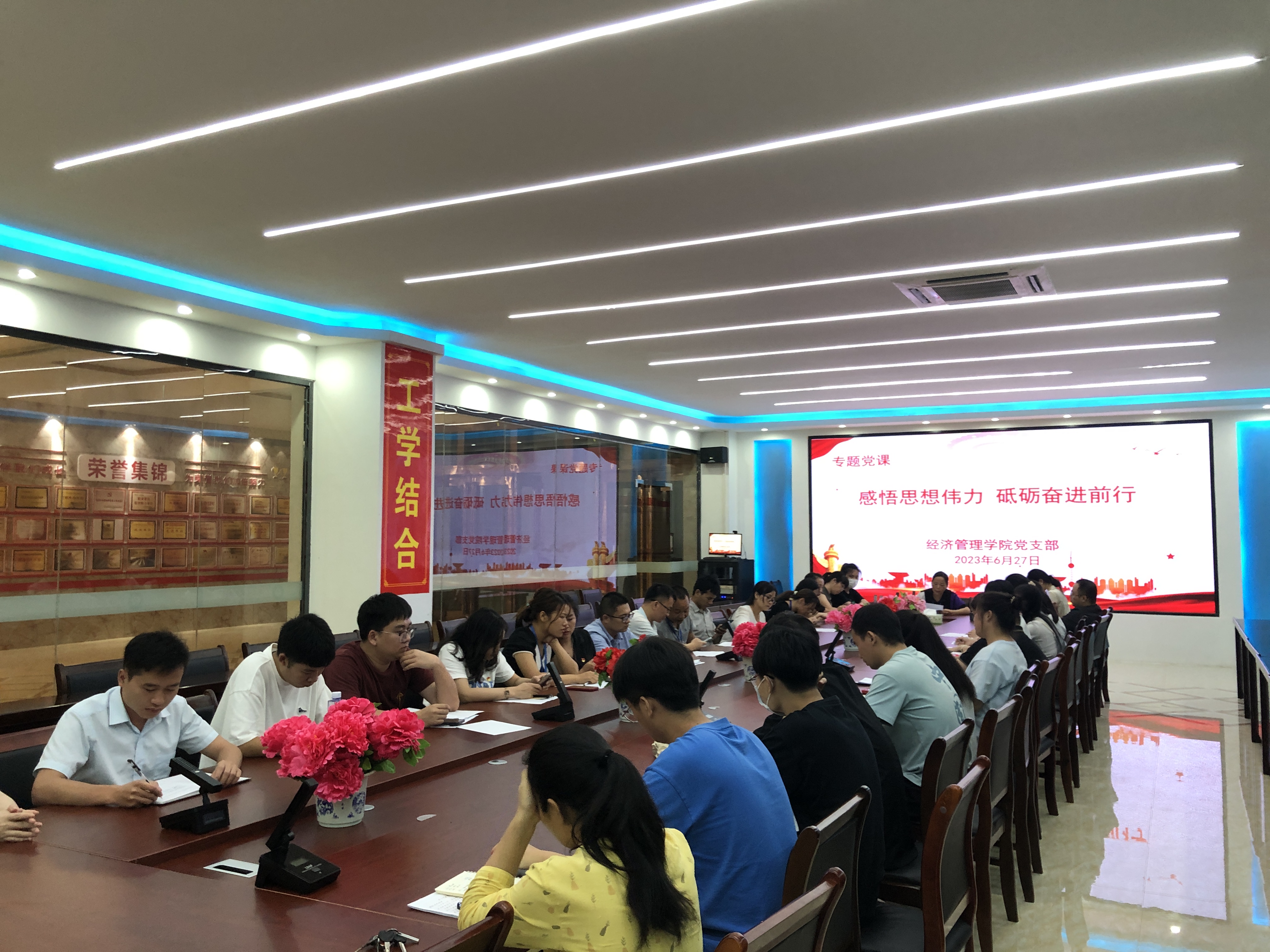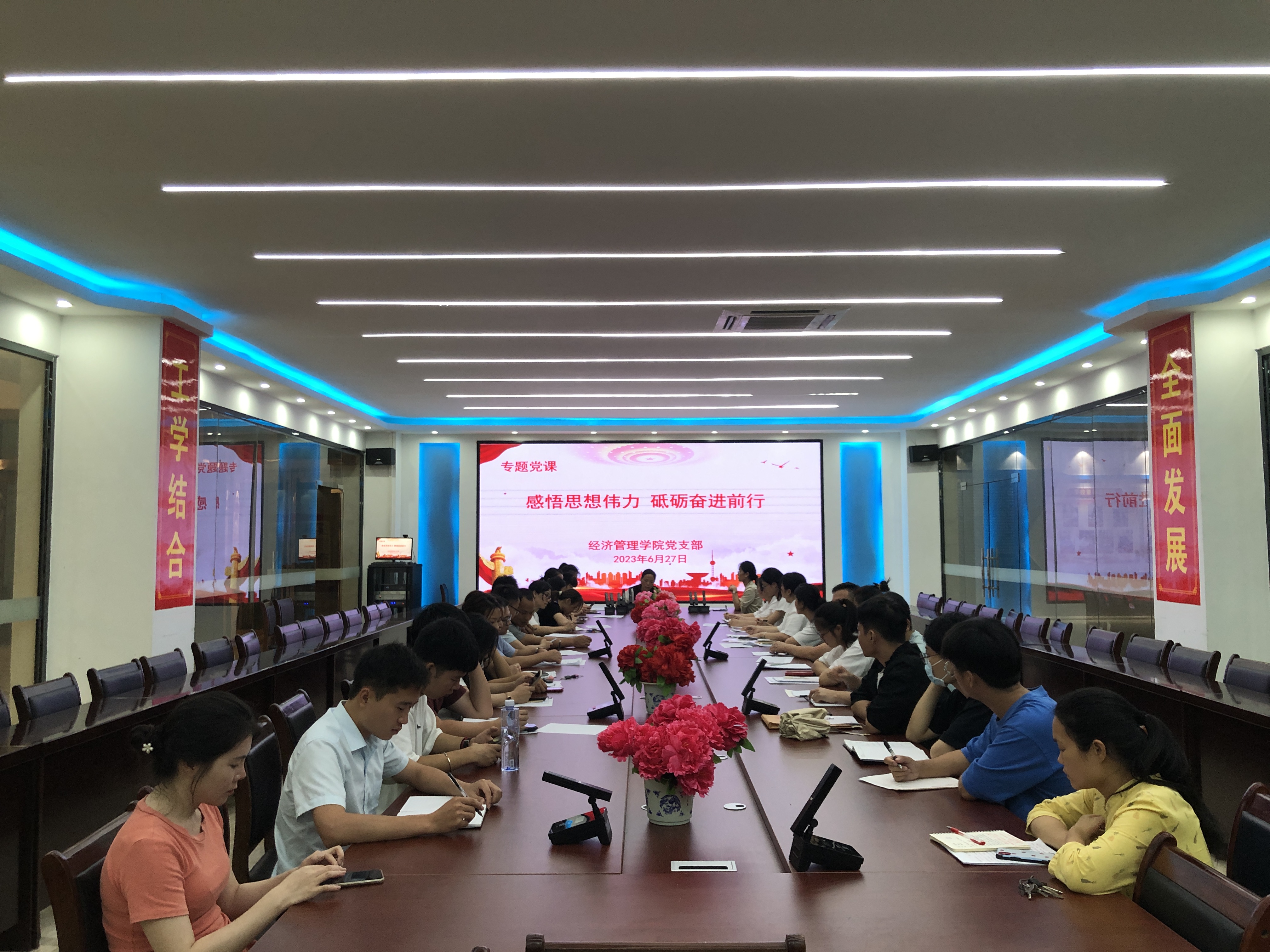 在“七一”即將來臨之際,為深入學(xué)習(xí)宣傳貫徹習(xí)近平新時代中國特色社會主義思想和黨的二十大精神,6月28日經(jīng)濟管理學(xué)院黨支部書記龐英連以“感悟思想偉力 砥礪奮進(jìn)前行”為主題,為支部全體黨員講授主題教育專題黨課。