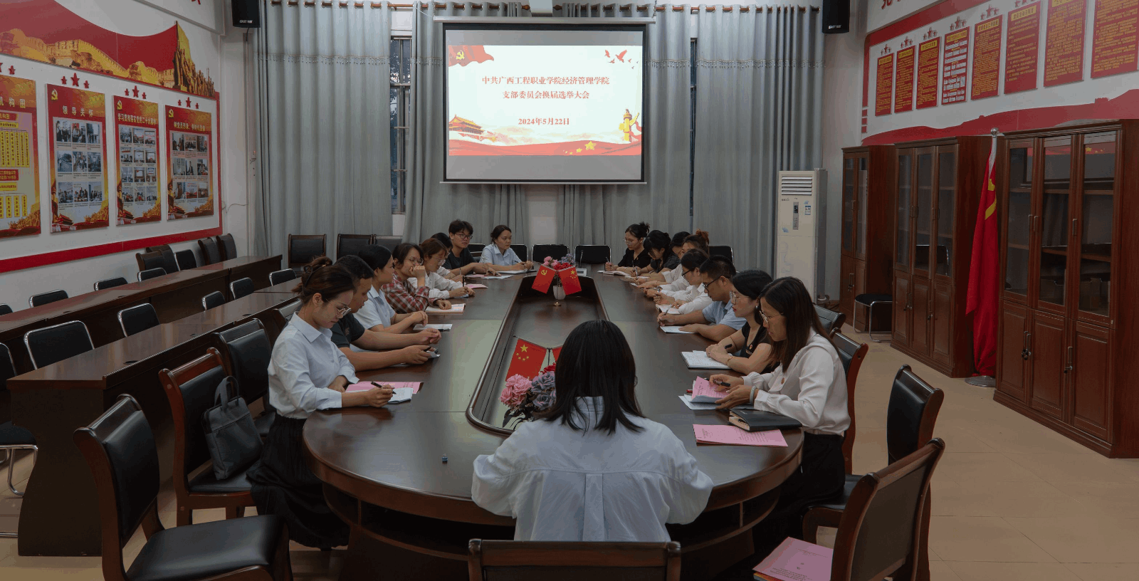為充分發(fā)揮黨支部戰(zhàn)斗堡壘作用,根據(jù)《中國共產(chǎn)黨章程》《中國共產(chǎn)黨基層黨組織選舉工作條例》及相關(guān)文件規(guī)定,在學(xué)校黨委的領(lǐng)導(dǎo)及部署下,2024年5月22日晚上,經(jīng)濟(jì)管理學(xué)院黨支部在圖書館黨員活動室召開換屆選舉大會。
