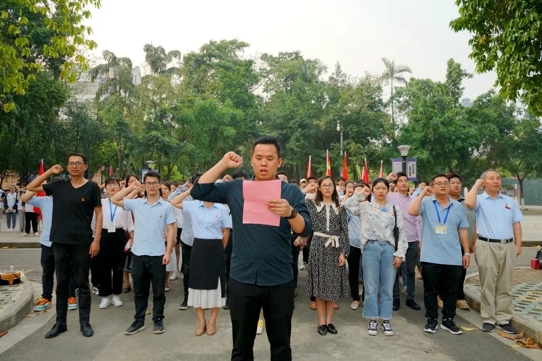 隨后,全體黨員莊嚴(yán)的舉起右手,面對紀(jì)念碑重溫了入黨的誓詞,新黨員進行了入黨宣誓。