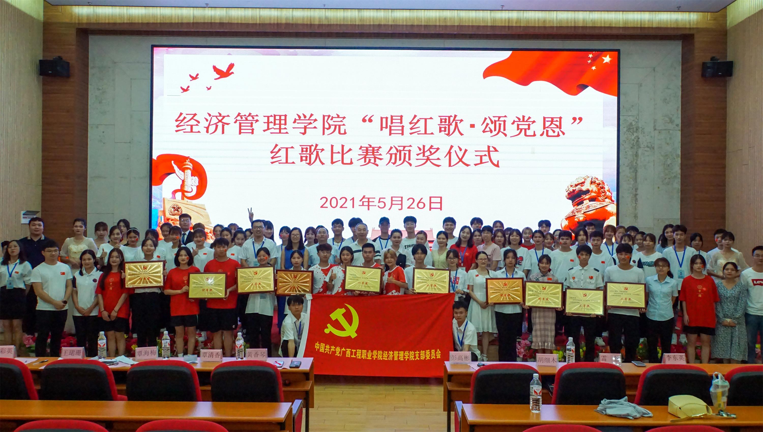 為喜迎建黨100周年,弘揚(yáng)愛(ài)國(guó)主義精神、構(gòu)建和諧校園,豐富校園文化活動(dòng),我院于2021年5月26日 20:00圖文信息大樓一樓學(xué)術(shù)報(bào)告廳舉辦主題為“唱紅歌頌黨恩”紅歌比賽,學(xué)校黨委副書(shū)記、副校長(zhǎng)胡細(xì)木、學(xué)校黨委宣傳部部長(zhǎng)、副校長(zhǎng)彭高彬、學(xué)校黨委辦公室主任黃香琴、經(jīng)濟(jì)管理學(xué)院副院長(zhǎng)覃清香、經(jīng)濟(jì)管理學(xué)院辦公室主任雷紅、經(jīng)濟(jì)管理學(xué)院分團(tuán)委書(shū)記李東英、經(jīng)濟(jì)管理學(xué)院全體老師、學(xué)校教務(wù)處老師覃海梅以及教育學(xué)院老師王珺珊應(yīng)邀欣賞了這場(chǎng)精彩絕倫的紅色盛典,學(xué)校黨委宣傳部部長(zhǎng)、副校長(zhǎng)彭高彬?yàn)榧t歌比賽開(kāi)場(chǎng)做了開(kāi)場(chǎng)致辭!
