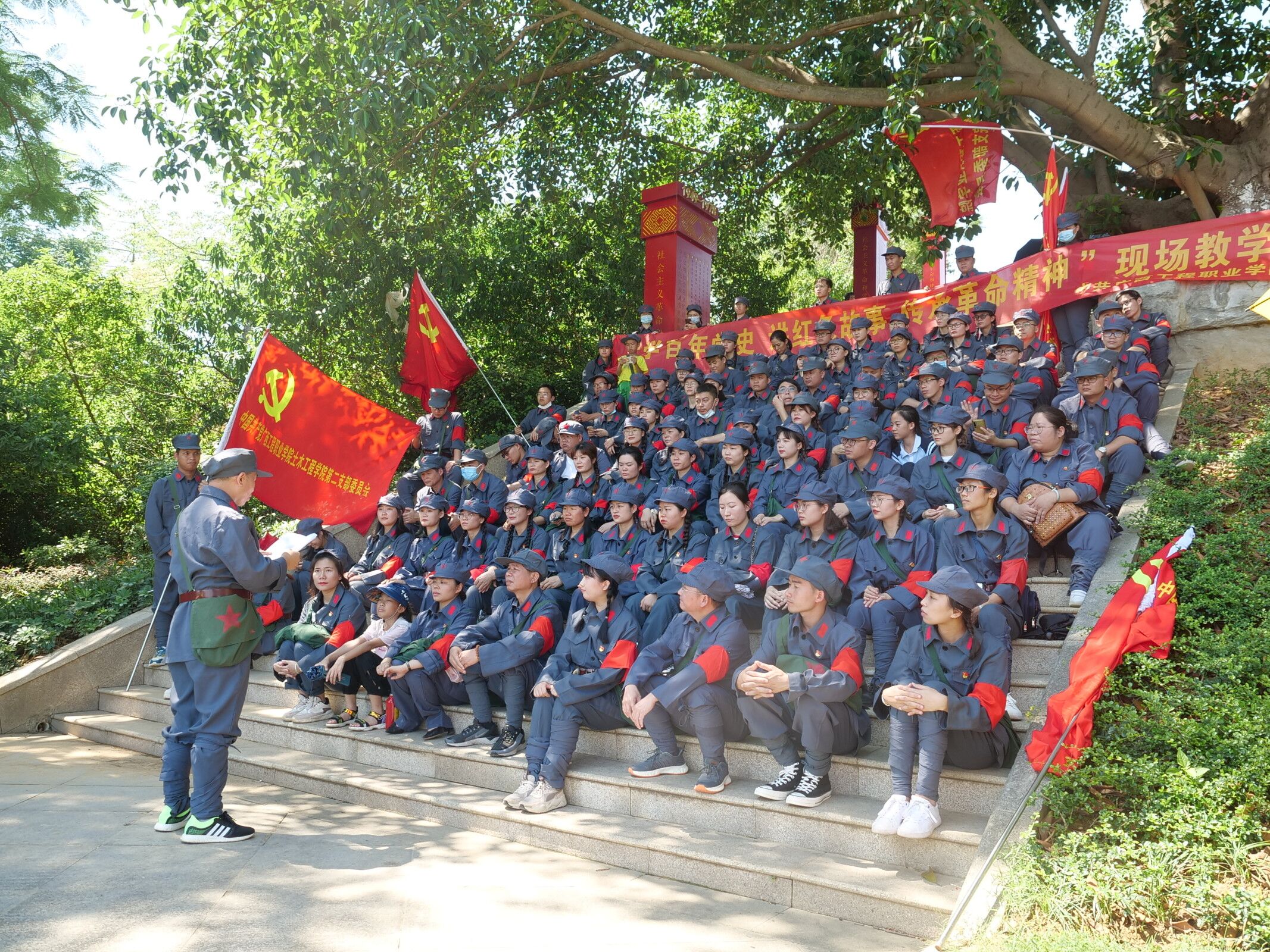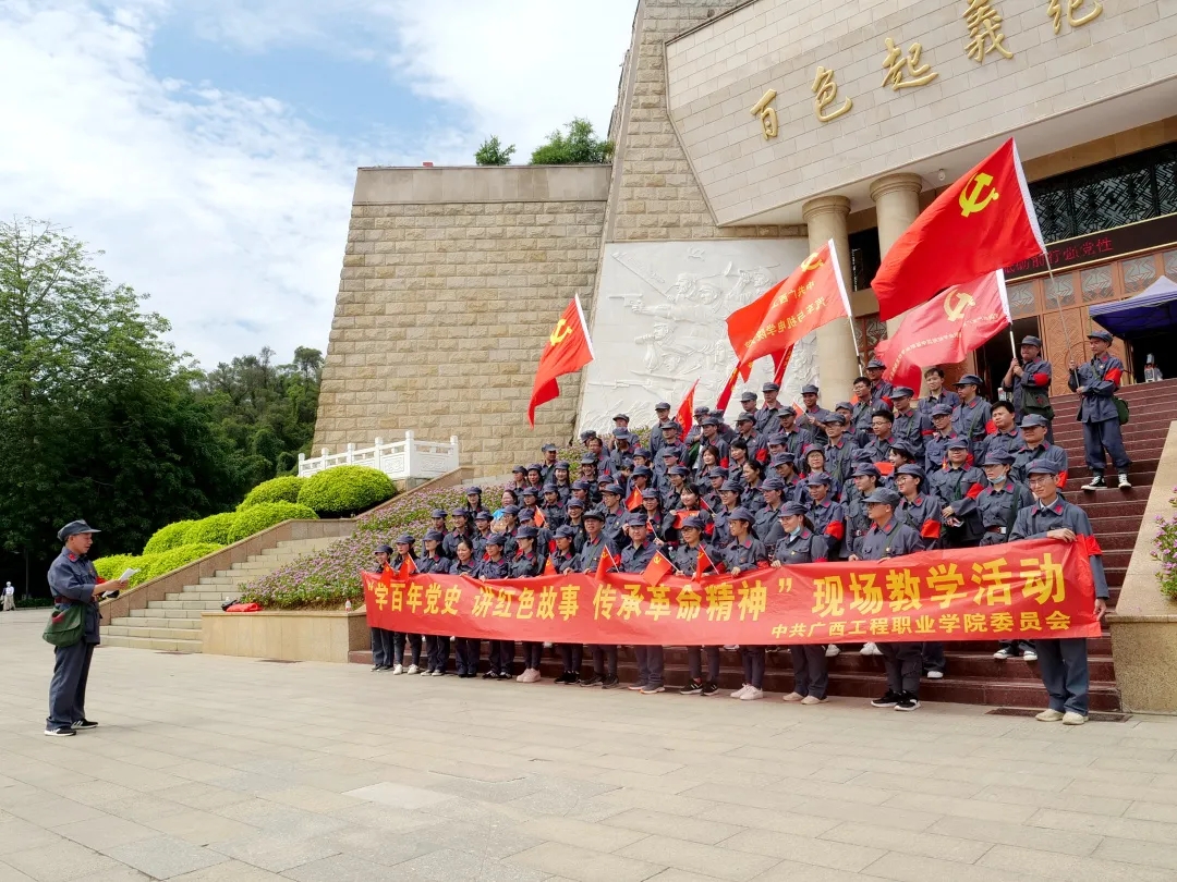 最后一站來(lái)到百色起義紀(jì)念館,在百色起義紀(jì)念館大門階梯上,全體黨員身著紅軍裝,整齊肅立,再次聆聽學(xué)校黨委副書記、副校長(zhǎng)胡細(xì)木為大家講述“百色起義歷史及紅色故事”。隨后,集體參觀學(xué)習(xí)了百色起義歷史展館廳、英烈廳等展廳。一個(gè)一個(gè)的紅色革命故事,一件一件的紅色革命文物,洗滌和凈化了我們內(nèi)心深處的靈魂,更加堅(jiān)定了我們?cè)谛聲r(shí)代賡續(xù)紅色血脈、傳承紅色精神的理想信念。