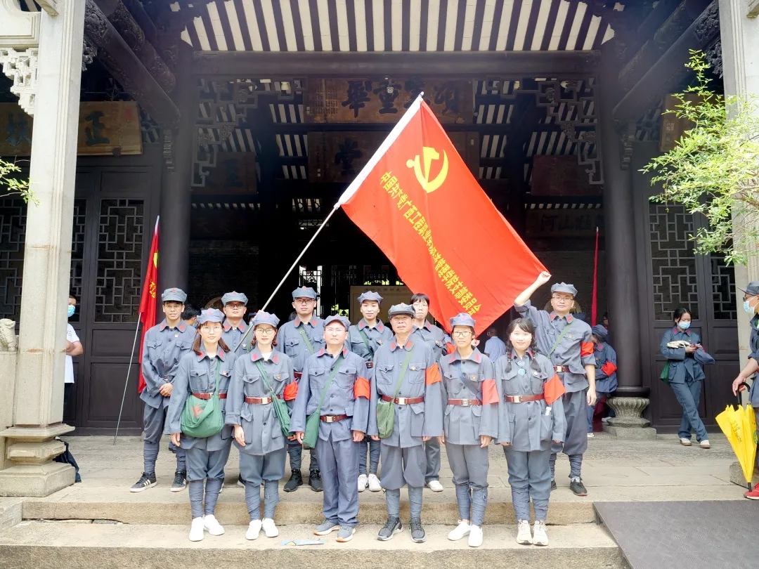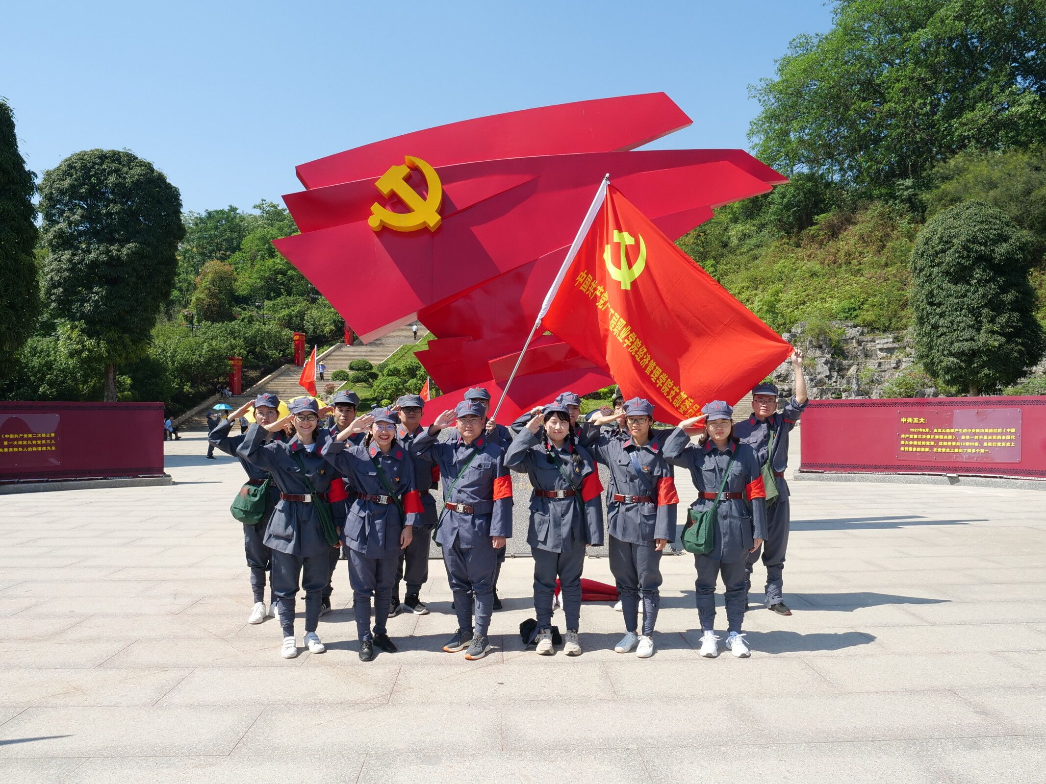 第二站來(lái)到粵東會(huì)館,參觀百色起義紅七軍指揮部遺址,緬懷鄧小平、張?jiān)埔?、韋拔群等老一輩革命家浴血奮戰(zhàn)的歷史足跡,感受當(dāng)年百色起義波瀾壯闊的場(chǎng)面,感悟革命先輩的革命精神。大家深深感到:在這么簡(jiǎn)陋的條件下,我們的革命先輩克服了極度艱苦的條件和難以想象的困難,將革命不斷引向勝利,創(chuàng)造了光輝的百色起義精神。廣大黨員干部在會(huì)館大廳門前,整齊集隊(duì),高舉黨旗,學(xué)唱《沒(méi)有共產(chǎn)黨就沒(méi)有新中國(guó)》《團(tuán)結(jié)就是力量》《歌唱祖國(guó)》等紅色經(jīng)典歌曲,亢奮的歌曲催人奮進(jìn),激發(fā)起全體黨員的學(xué)史愛黨真摯情懷。
