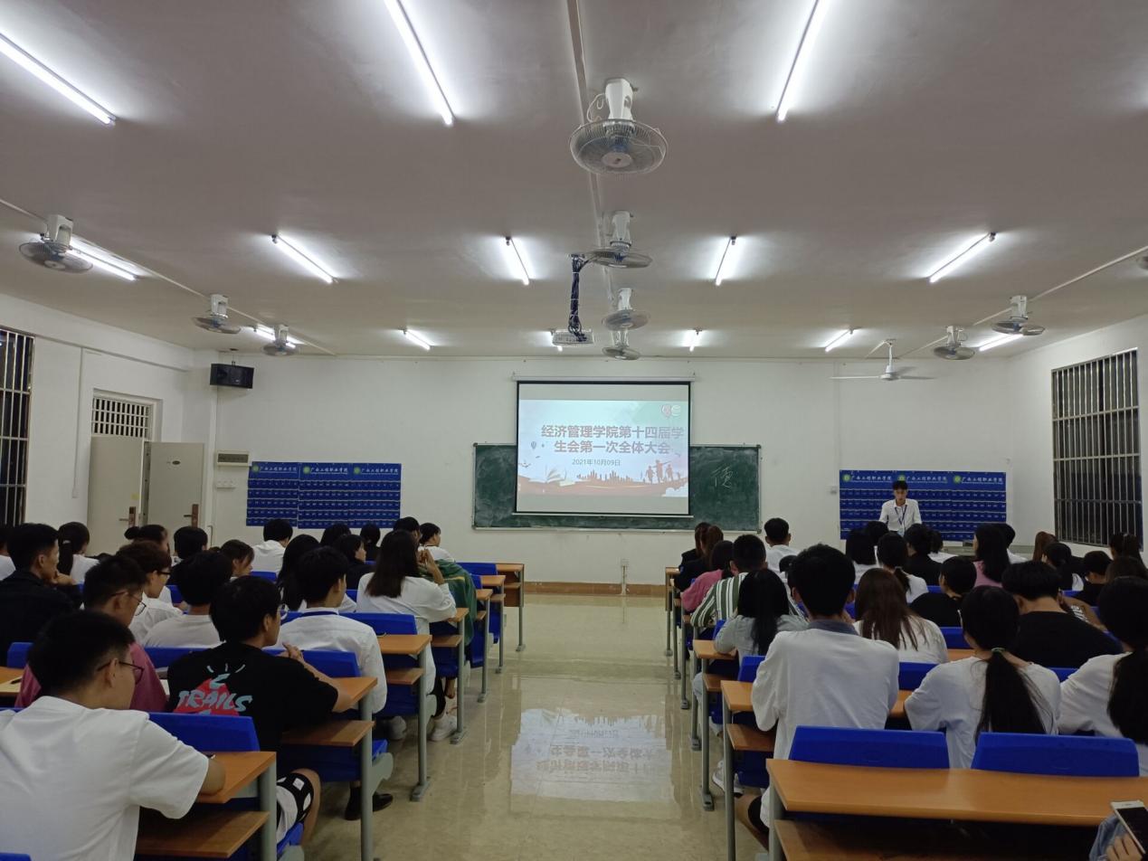 2021年10月9日下午,經(jīng)濟管理學院學生會在學院一樓102教室召開了第一次全體大會。首先由主持人王毅智介紹參加會議的人員,出席大會的領導嘉賓有學院副院長覃清香,執(zhí)行主席彭橋峰,副主席賓蘭,各部門的部長、副部長,以及學生會全體成員。