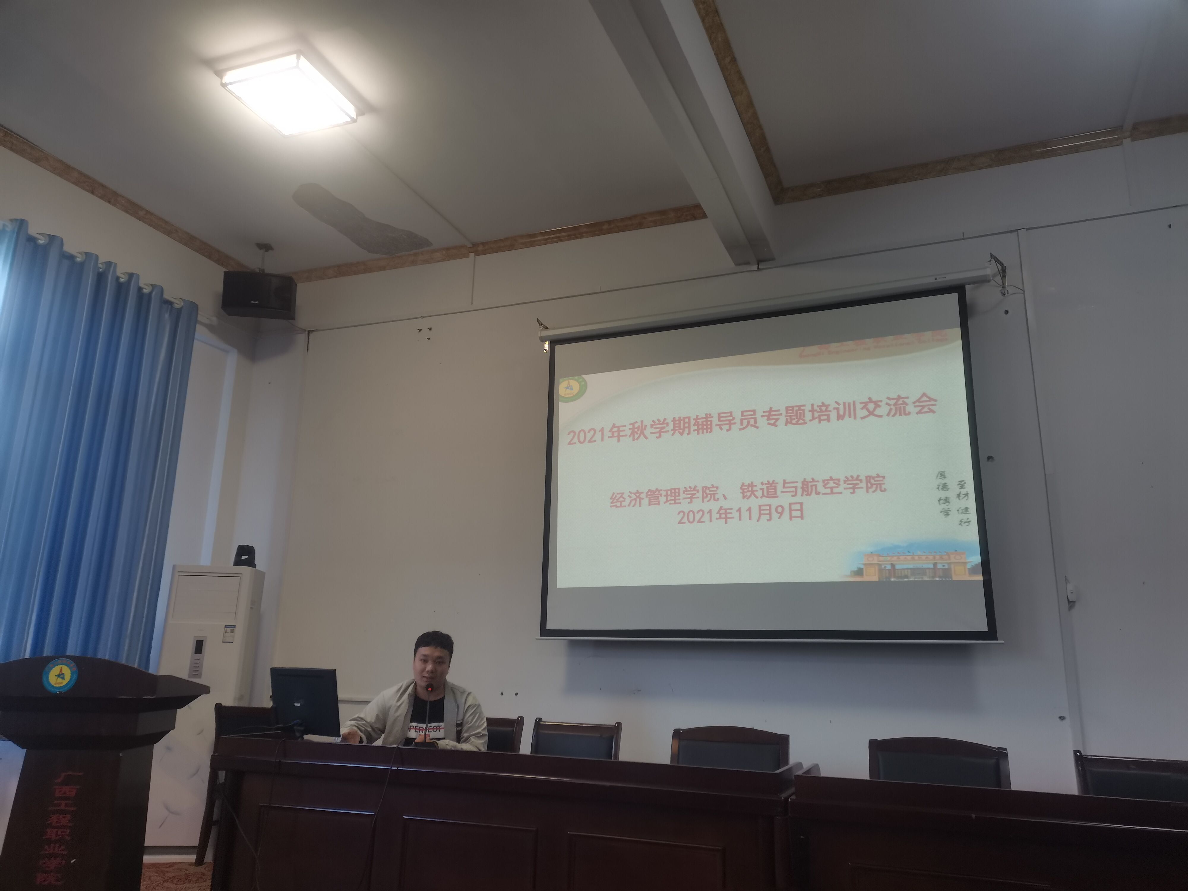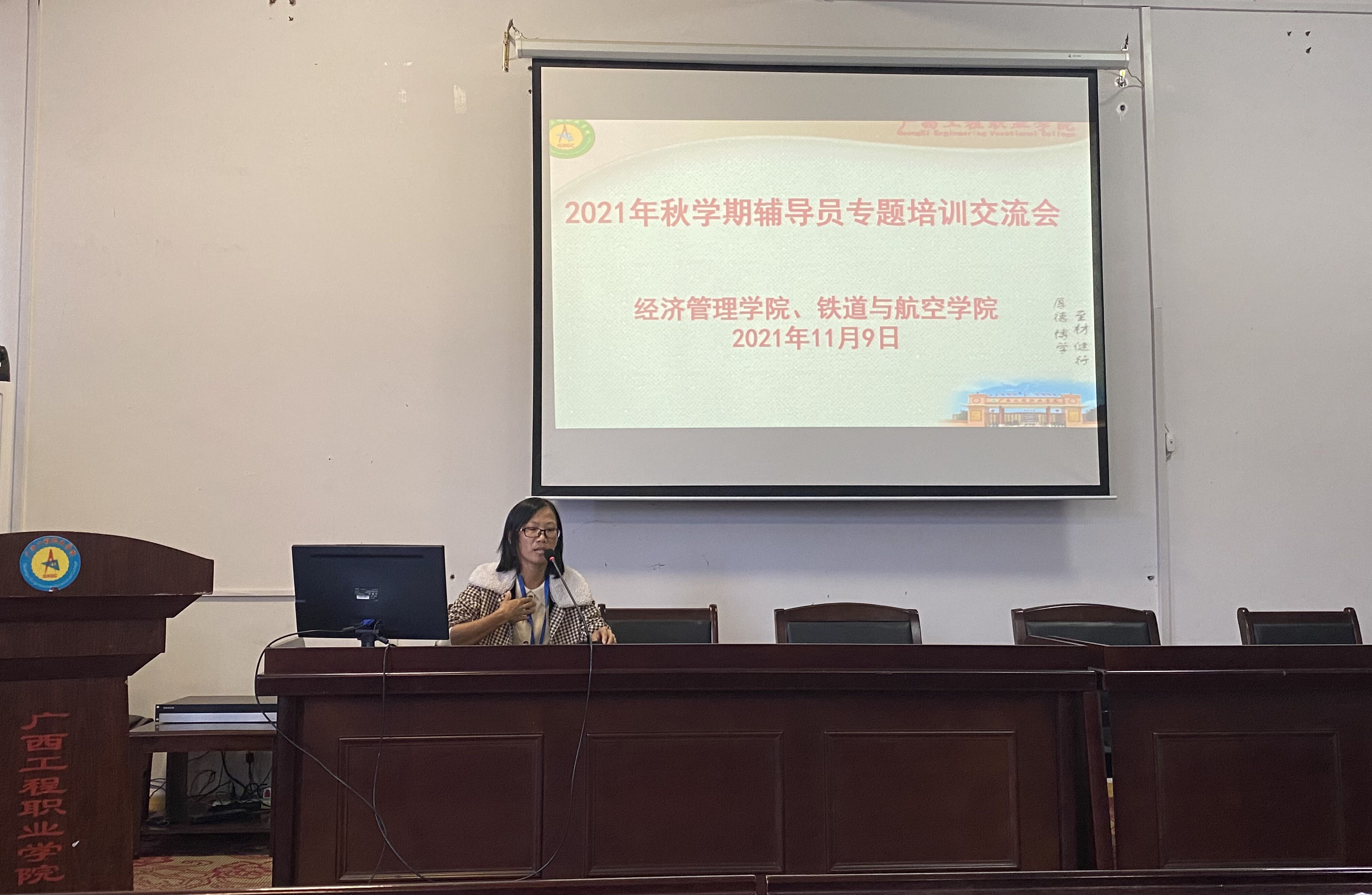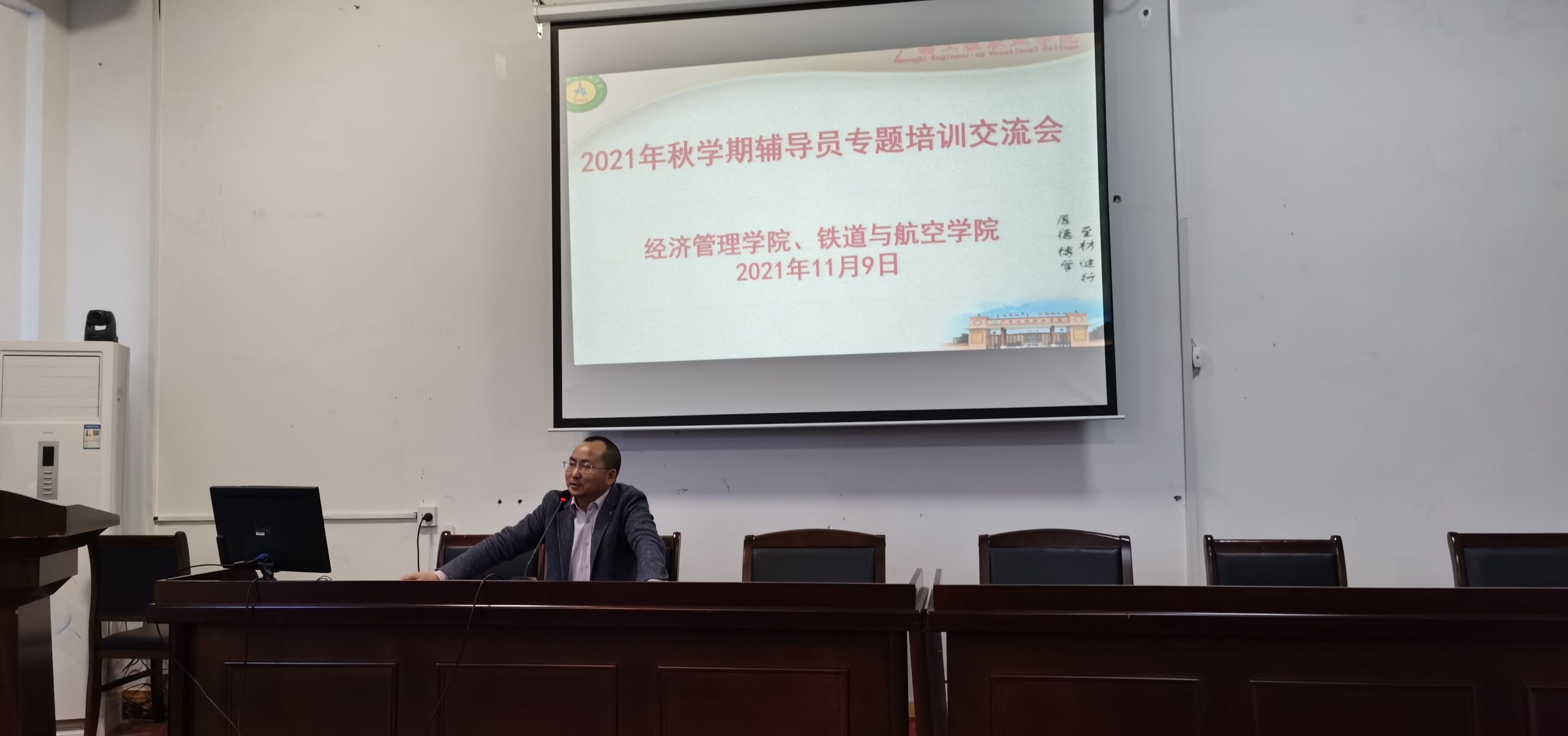 為提升我校思想政治工作質(zhì)量和輔導(dǎo)員隊(duì)伍建設(shè)水平,培養(yǎng)輔導(dǎo)員隊(duì)伍的職業(yè)榮譽(yù)感與歸屬感,增強(qiáng)輔導(dǎo)員的團(tuán)隊(duì)協(xié)作意識(shí),推動(dòng)輔導(dǎo)員隊(duì)伍專(zhuān)業(yè)化、職業(yè)化發(fā)展,11月9日下午,經(jīng)濟(jì)管理學(xué)院、鐵道與航空管理學(xué)院在我校圖書(shū)館一樓學(xué)術(shù)報(bào)告廳聯(lián)合召開(kāi)2021年秋學(xué)期輔導(dǎo)員專(zhuān)題培訓(xùn)交流會(huì),學(xué)校黨委委員、副校長(zhǎng)彭高彬參與并指導(dǎo)此次交流會(huì),兩個(gè)二級(jí)學(xué)院的黨支部書(shū)記、分團(tuán)委書(shū)記、全體輔導(dǎo)員參加交流會(huì)。