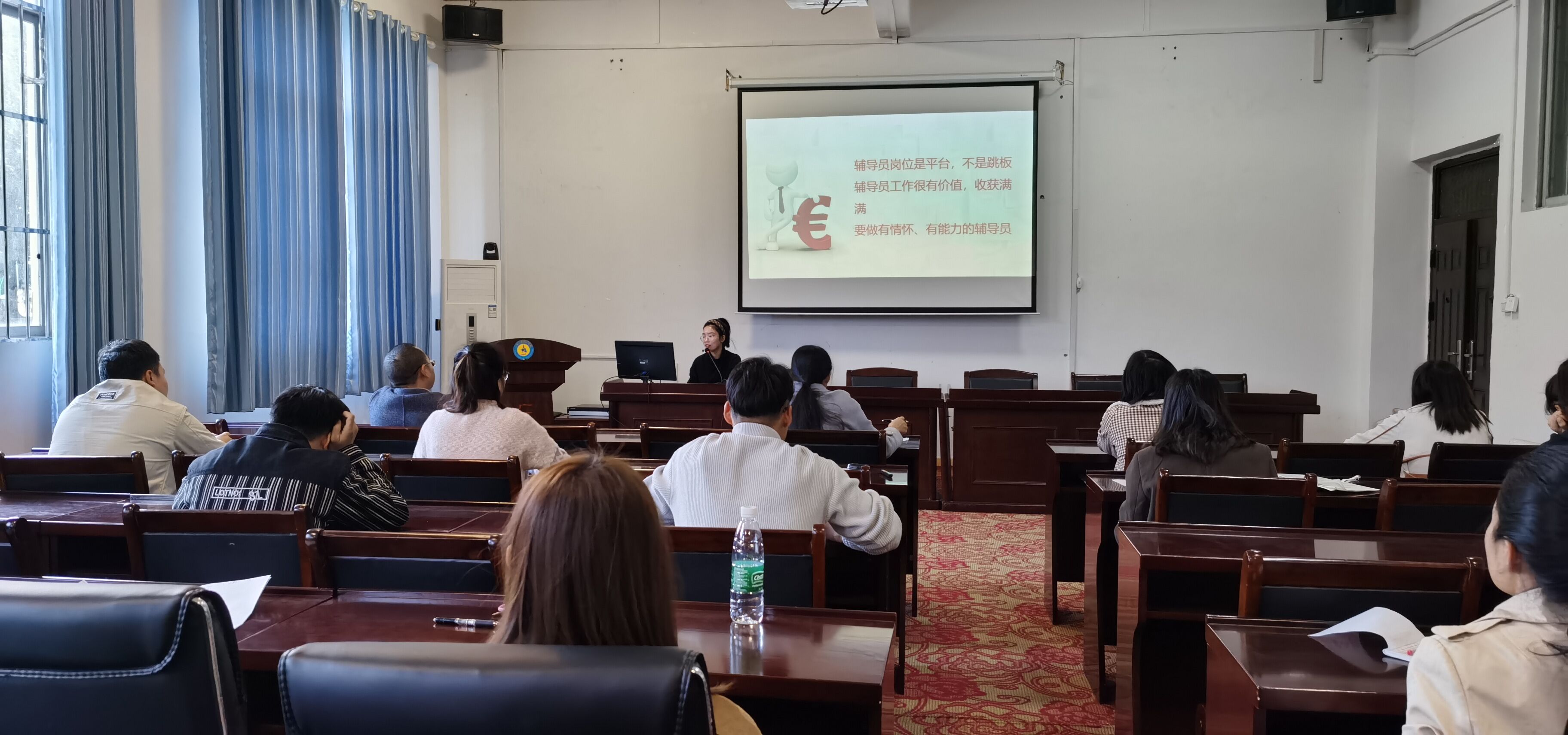 首先,由經(jīng)濟(jì)管理學(xué)院20級(jí)輔導(dǎo)員覃蘭蘭分享了自己參加2021年廣西高校輔導(dǎo)員骨干培訓(xùn)班的心得,她談到,在為期一周的培訓(xùn)中,通過(guò)聽(tīng)專(zhuān)題報(bào)告、參與案例分析、開(kāi)展攀巖活動(dòng)等形式,圍繞當(dāng)前高校學(xué)生工作中的難點(diǎn)、熱點(diǎn)問(wèn)題進(jìn)行了學(xué)習(xí)與探討,對(duì)高校輔導(dǎo)員工作有了進(jìn)一步的認(rèn)識(shí),深感輔導(dǎo)員工作的艱辛與責(zé)任,輔導(dǎo)員是學(xué)校與學(xué)生之間的媒介、紐帶、橋梁;是開(kāi)展學(xué)生思想政治教育的骨干力量;是學(xué)生健康成長(zhǎng)的指導(dǎo)者和引路人。所以說(shuō),輔導(dǎo)員工作是教育人、培養(yǎng)人的工作,而培養(yǎng)人、教育人的工作是有客觀(guān)規(guī)律的,這個(gè)規(guī)律是可認(rèn)知的,應(yīng)該遵循的。特別是對(duì)學(xué)生思想政治教育,心理健康教育以及法制觀(guān)念的教育,更有利于端正學(xué)生的學(xué)習(xí)態(tài)度,使他們的學(xué)習(xí)生活過(guò)得更加充實(shí),更加有意義。有利于避免一些本不應(yīng)該發(fā)生的惡性事件。她認(rèn)為,盡管輔導(dǎo)員日常工作的內(nèi)容比較雜,比較瑣碎。但作為一名教育工作者必須充分調(diào)動(dòng)自己工作熱情,積極融入到學(xué)生工作中,體現(xiàn)出自身的職業(yè)素養(yǎng),在學(xué)生心目中樹(shù)立良好的輔導(dǎo)員形象;充分發(fā)揮學(xué)生干部在學(xué)生工作中的積極作用,調(diào)動(dòng)他們的積極性,培養(yǎng)學(xué)生潛在能力。