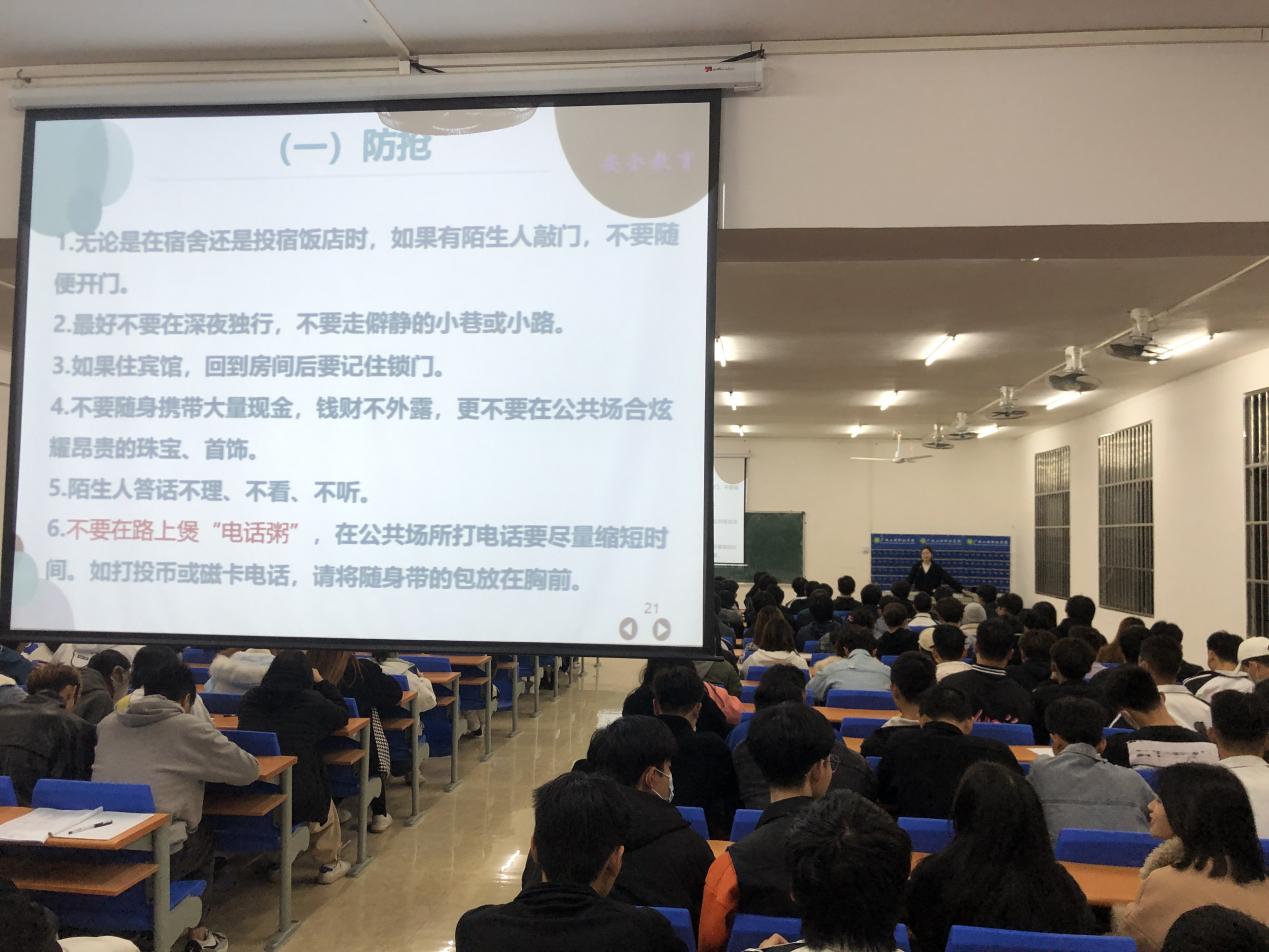 會上,通過案例給同學(xué)們普及了防詐騙、防搶知識