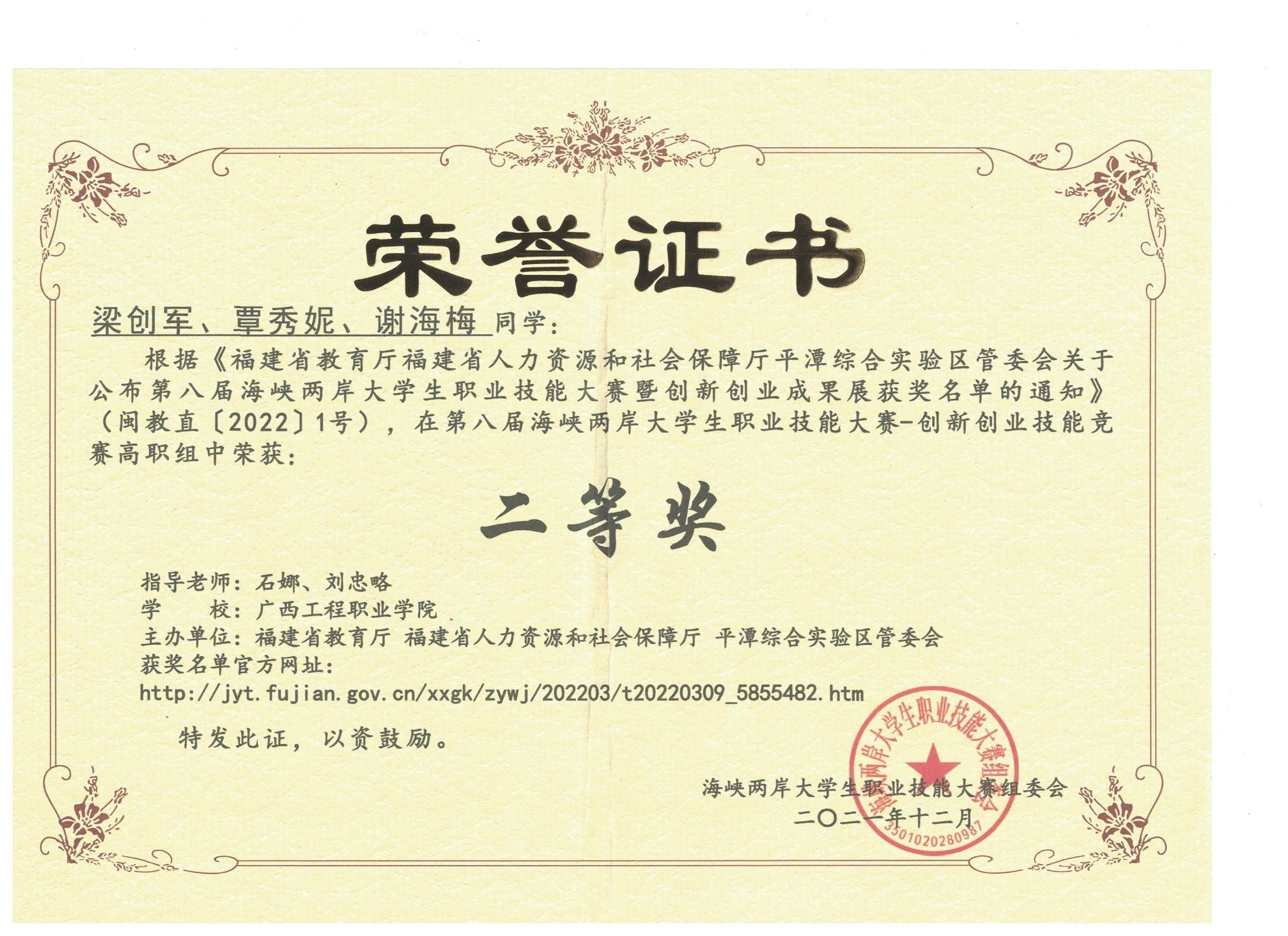 2021年12月4日,第八屆海峽兩岸大學(xué)生職業(yè)技能大賽-創(chuàng)新創(chuàng)業(yè)技能競(jìng)賽正式開(kāi)始比賽,通過(guò)《創(chuàng)業(yè)之星》軟件,學(xué)生們模擬經(jīng)營(yíng)一家公司從生產(chǎn)到銷售的一系列經(jīng)營(yíng)活動(dòng),充分的體現(xiàn)了在比賽中他們的個(gè)人思考能力和團(tuán)隊(duì)協(xié)作能力。此項(xiàng)比賽由經(jīng)濟(jì)管理學(xué)院管理教研室教師石娜、劉忠略帶領(lǐng)梁創(chuàng)軍、覃秀妮、謝海梅3位學(xué)生,經(jīng)過(guò)激烈角逐,勇創(chuàng)佳績(jī),榮獲高職組團(tuán)體二等獎(jiǎng)。