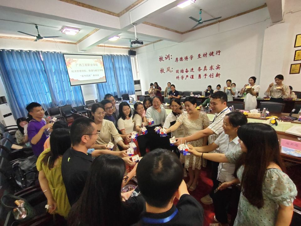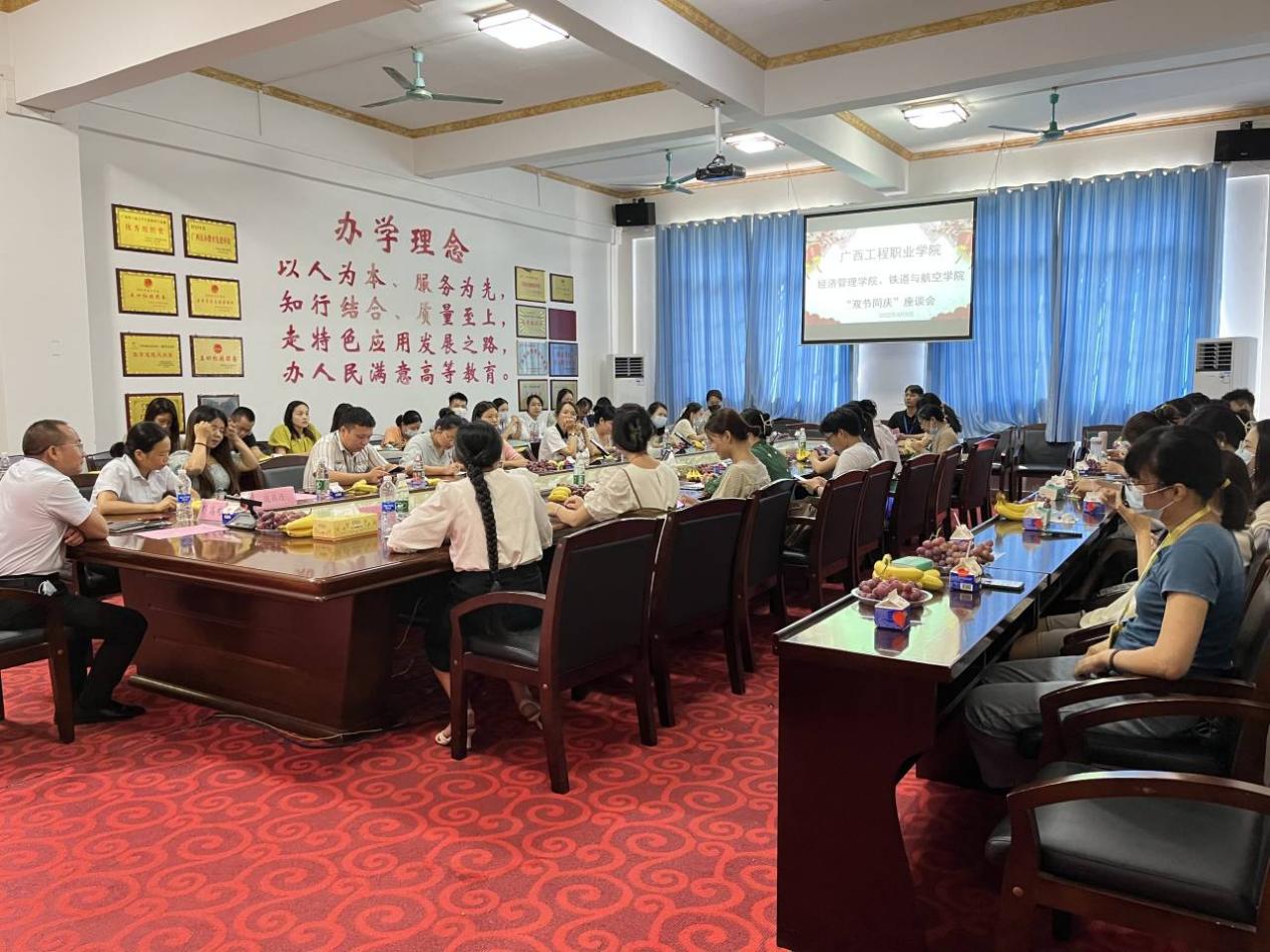 九月,一個(gè)丹桂飄香的季節(jié),一個(gè)充滿收獲充滿感恩的季節(jié),一個(gè)屬于教師的季節(jié)。在第38個(gè)教師節(jié)和中國傳統(tǒng)節(jié)日中秋節(jié)。9月9日,經(jīng)濟(jì)管理學(xué)院和鐵道與航空學(xué)院在圖書館一樓會議室聯(lián)合舉行中秋節(jié)、教師節(jié)“雙節(jié)同慶”座談會。參加此次座談會的有:學(xué)校紀(jì)委書記、副校長彭高彬,經(jīng)濟(jì)管理學(xué)院院長龐英連,鐵道與航空學(xué)院院長覃鳳姣,以及兩個(gè)學(xué)院的全體教師。