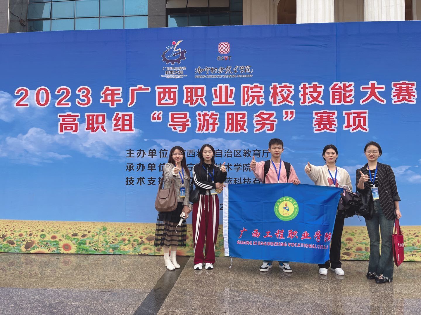 2023年廣西職業(yè)院校(高職組)導(dǎo)游服務(wù)賽項(xiàng)于3月18日-21日在南寧職業(yè)技術(shù)學(xué)院舉辦,此次比賽為個(gè)人賽,各校參賽選手共80人,本賽項(xiàng)由 5 個(gè)部分共4 個(gè)環(huán)節(jié)組成,即:導(dǎo)游知識測試、現(xiàn)場導(dǎo)游詞創(chuàng)作及講解、自選景點(diǎn)導(dǎo)游講解、導(dǎo)游英語口語測試、才藝運(yùn)用,其中第二、三項(xiàng)作為一個(gè)競賽環(huán)節(jié)在同一場地按序完成,其余三項(xiàng)作為獨(dú)立環(huán)節(jié)在各自比賽場地完成。