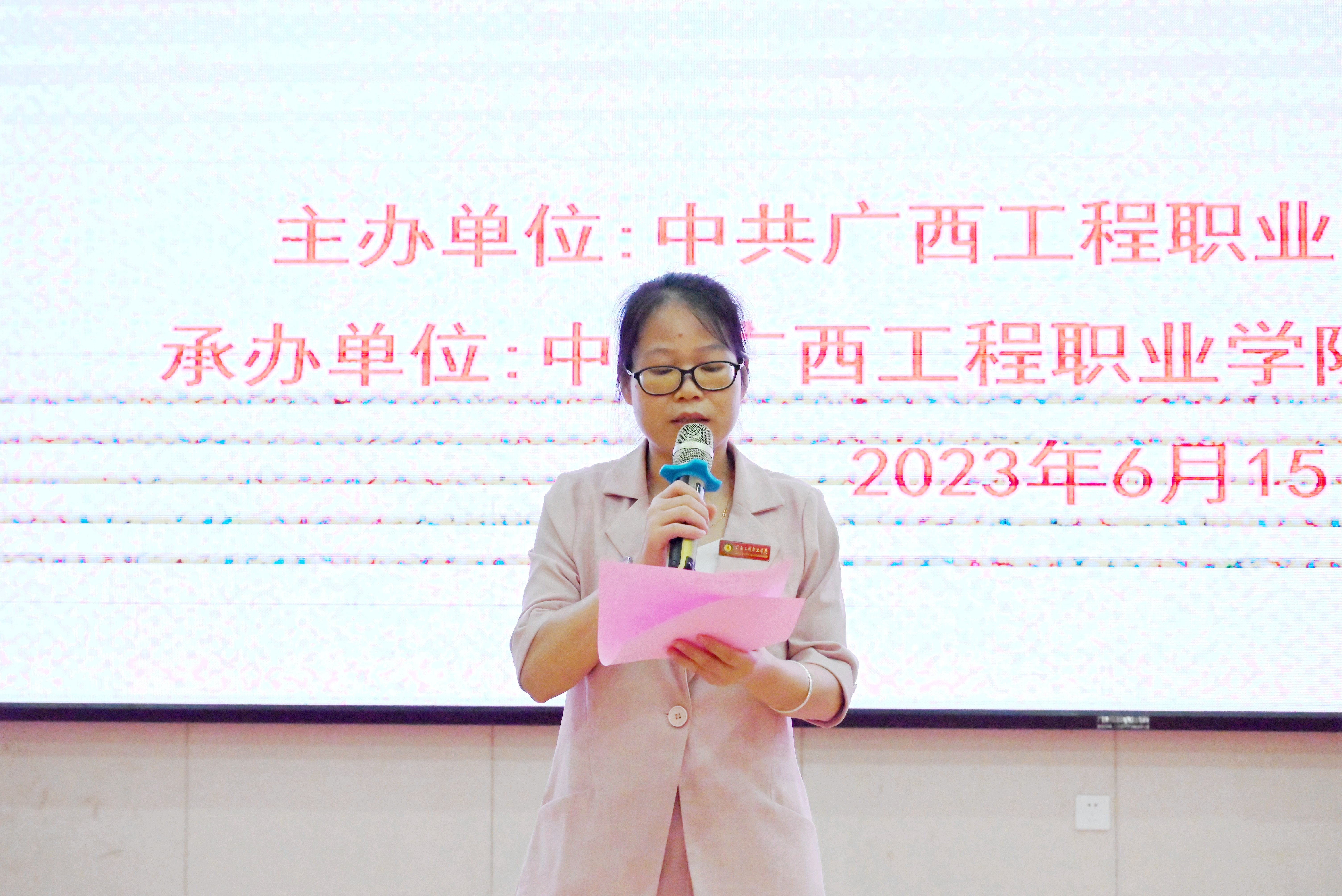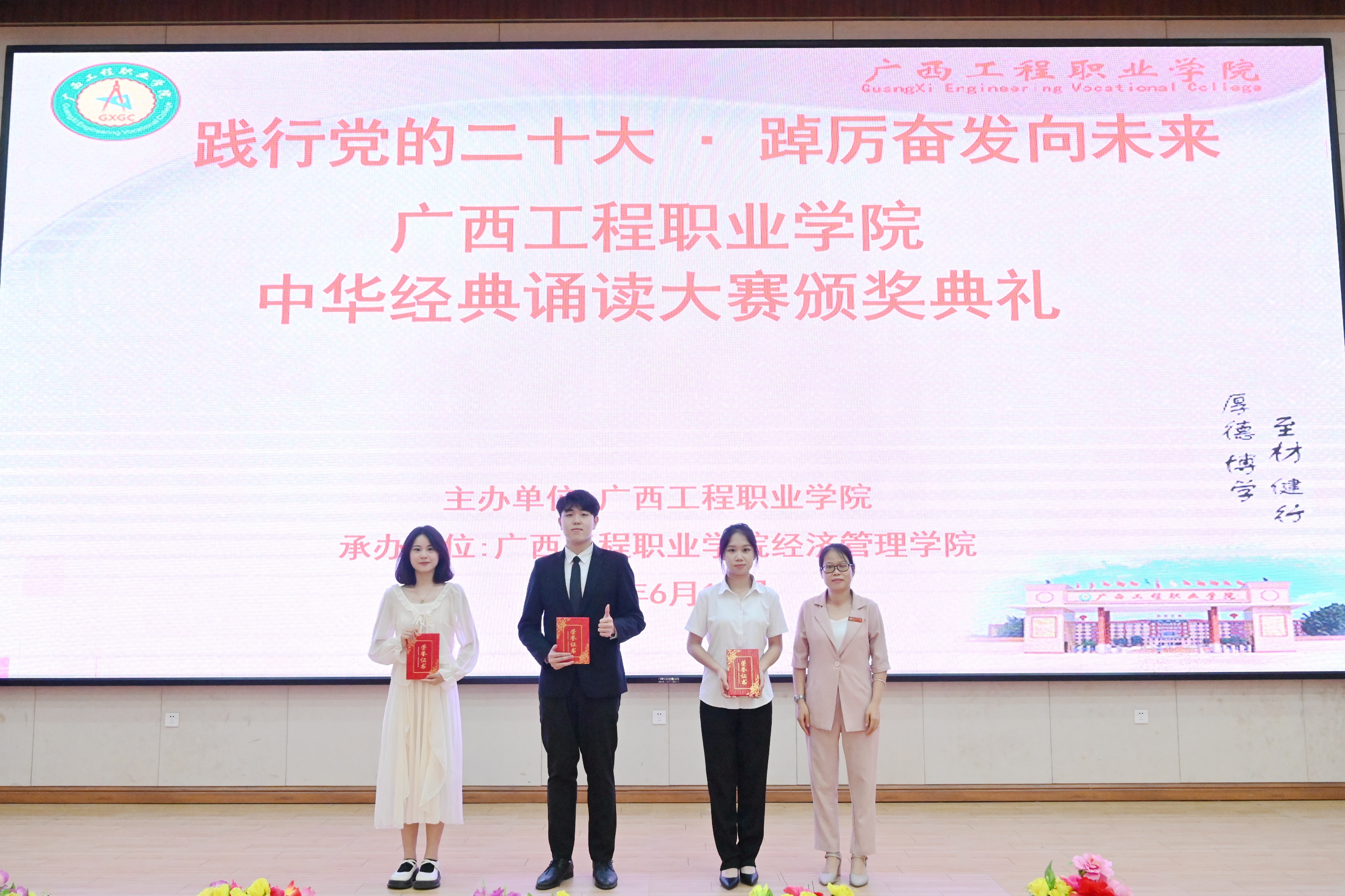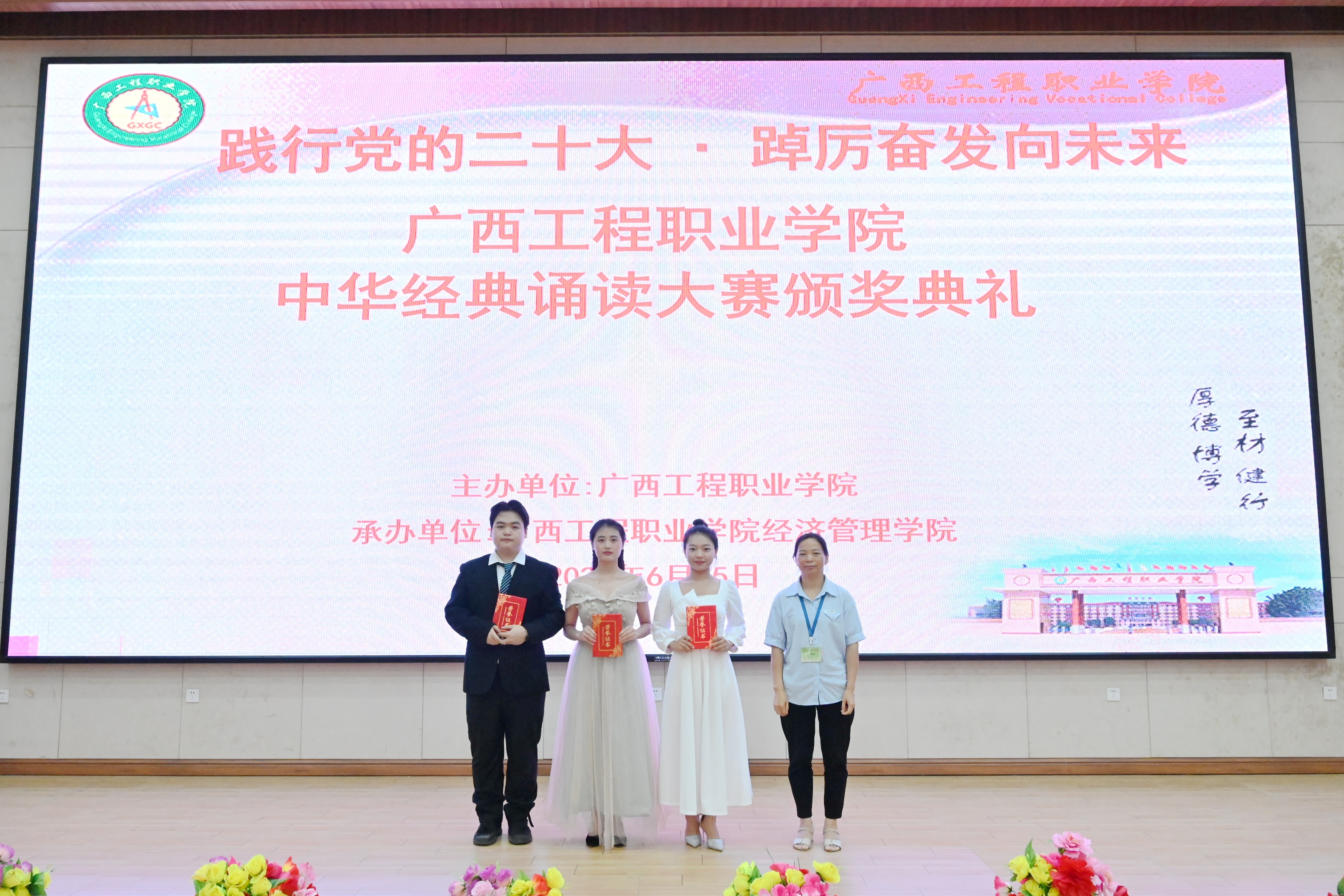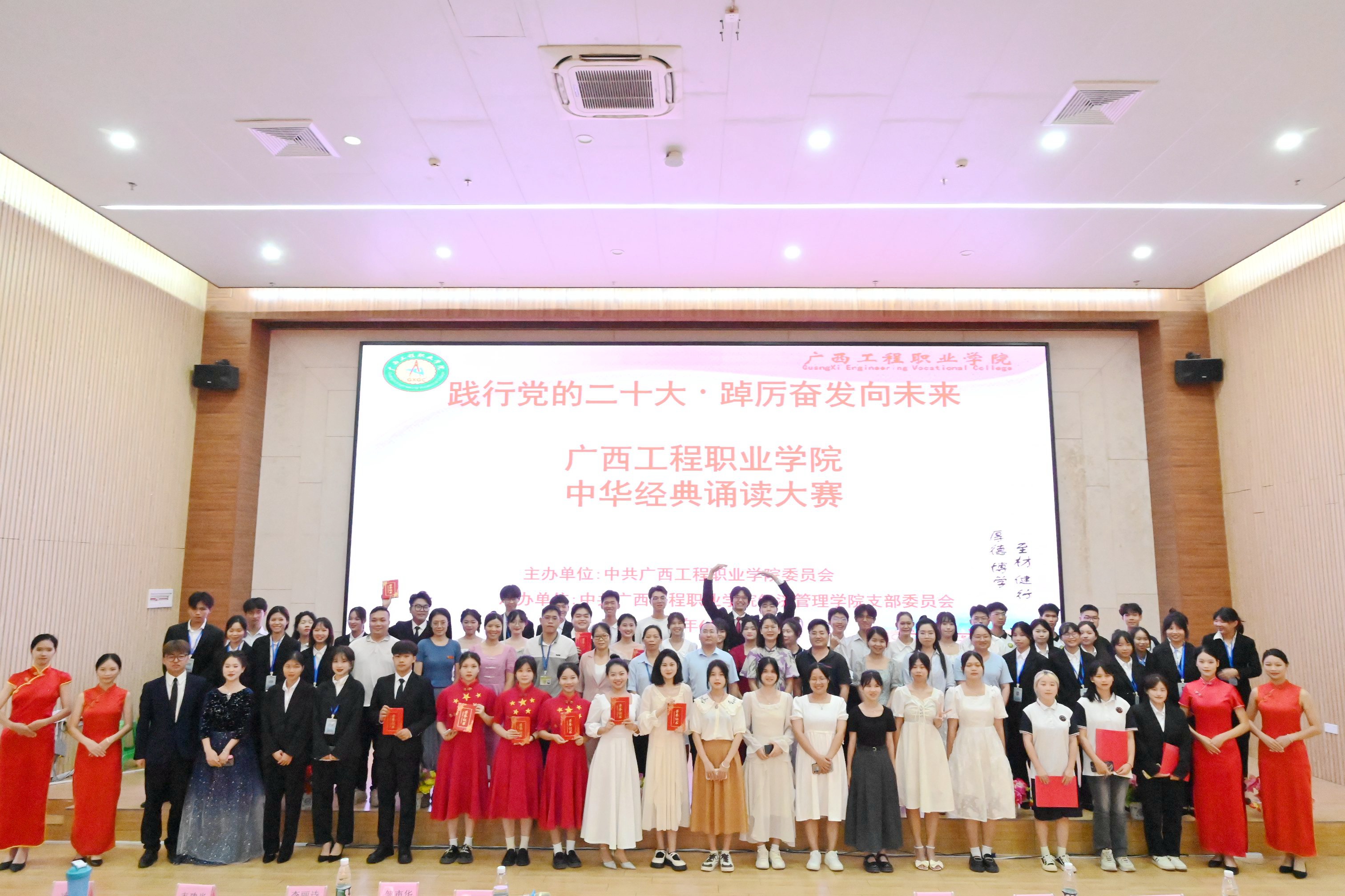 為深入貫徹黨的二十大精神,加大國家通用語言文字推廣力度,弘揚(yáng)中華優(yōu)秀傳統(tǒng)文化,推進(jìn)文化自信自強(qiáng)。以中華經(jīng)典、紅色文化鑄魂育人,奏響愛黨、愛國、愛社會(huì)主義的主旋律,鑄牢中華民族共同體意識(shí),凝聚奮進(jìn)新征程、建功新時(shí)代的磅礴力量。2023年6月15日晚,廣西工程職業(yè)學(xué)院在圖文信息大樓一樓學(xué)術(shù)報(bào)告大廳舉行“踐行黨的二十大·踔厲奮發(fā)向未來”校園中華經(jīng)典誦讀大賽比賽,由中共廣西工程職業(yè)學(xué)院委員會(huì)主辦,中共廣西工程職業(yè)學(xué)院經(jīng)濟(jì)管理學(xué)院支部委員會(huì)承辦。