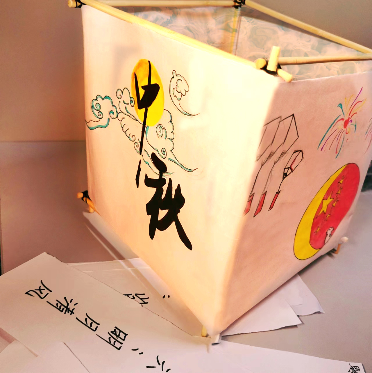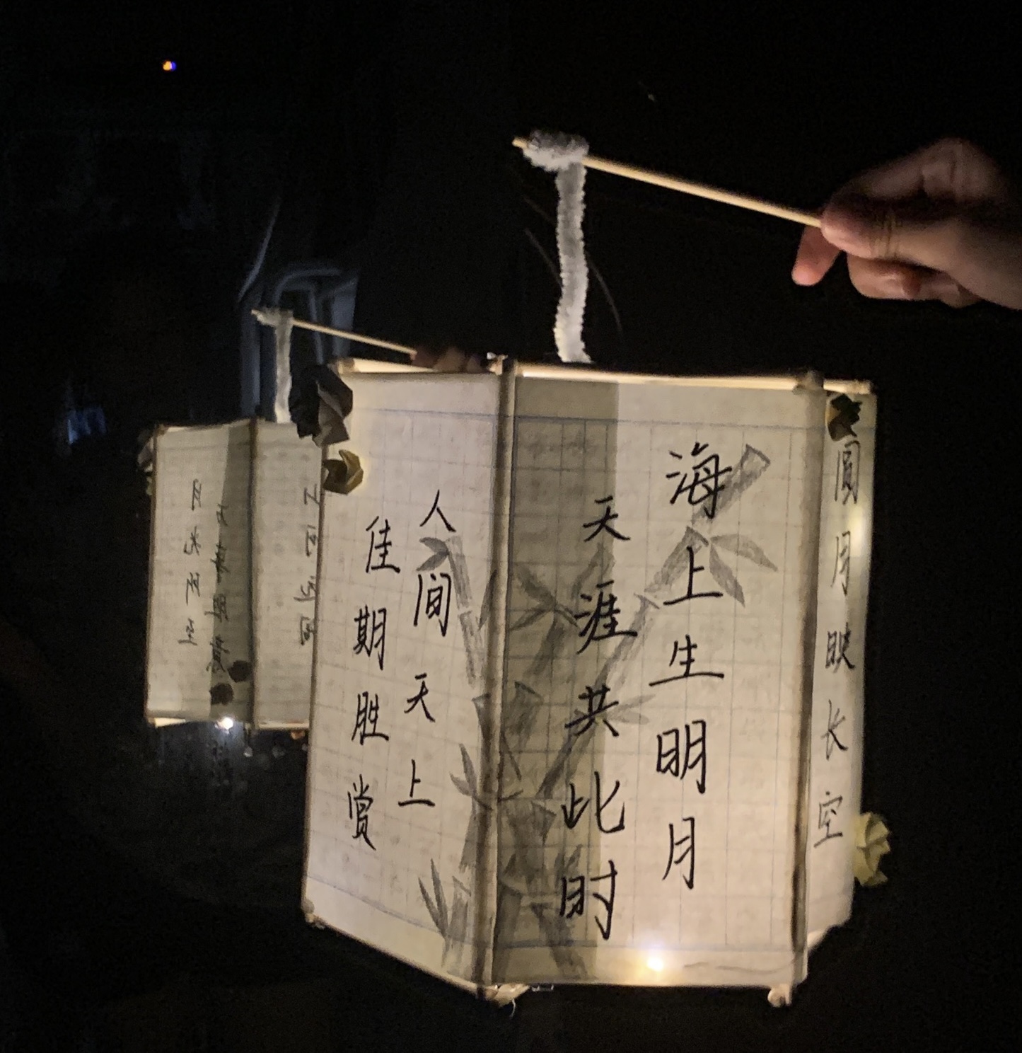 各班學(xué)生精心準(zhǔn)備了最環(huán)保的工具DIY創(chuàng)作中秋燈籠和各種手工藝品,比如用上的筷子和廢紙來創(chuàng)作。燈籠,又稱燈彩,是一種古老的傳統(tǒng)工藝品。起源于西漢時(shí)期,每年的農(nóng)歷正月十五元宵節(jié)前后,人們都掛起象征團(tuán)圓意義的紅燈籠來營造一種喜慶的氛圍,今時(shí)今日,我們?cè)缫褵o從得知是誰獨(dú)上高樓,為月亮賦予了離家與歸鄉(xiāng)、團(tuán)圓與大同的文化意涵與陰晴圓缺、悲欣交集的人生哲理,但可以確定的是,無論中秋賞月的習(xí)俗如何流變,月色亙古不變,所有中國人對(duì)月亮獨(dú)一份的瑰麗而恢宏的想象,都一如既往關(guān)乎人與時(shí)間、關(guān)乎自然與生命的韻律。