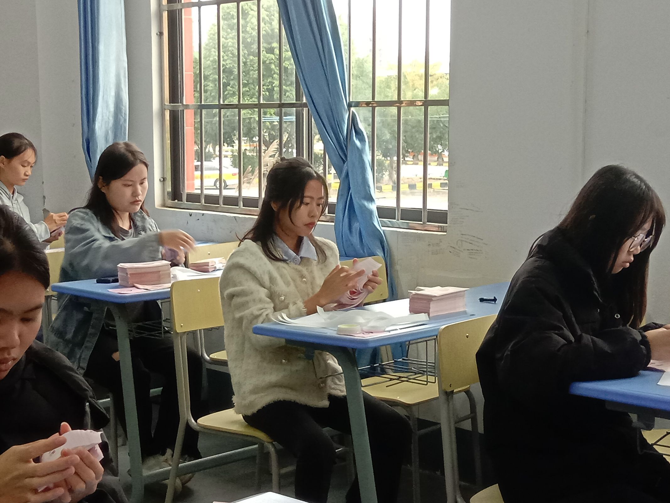 為了讓學生更好的了解大數(shù)據(jù)與財務(wù)管理、大數(shù)據(jù)與會計專業(yè)的技能特性,增強學生對專業(yè)課學習的熱情和動力,更好的營造出一個積極向上的校園學習環(huán)境和氣氛,讓學生更好的適應(yīng)當今社會快速發(fā)展的節(jié)奏,增強自身專業(yè)性。2023年12月16日,經(jīng)濟管理學院舉行“技能無限,青春有為”第四屆會計技能大賽。本次比賽分為三個項目:翻打傳票比賽、點鈔比賽、科目知識競賽。決賽在第2教學樓舉行。