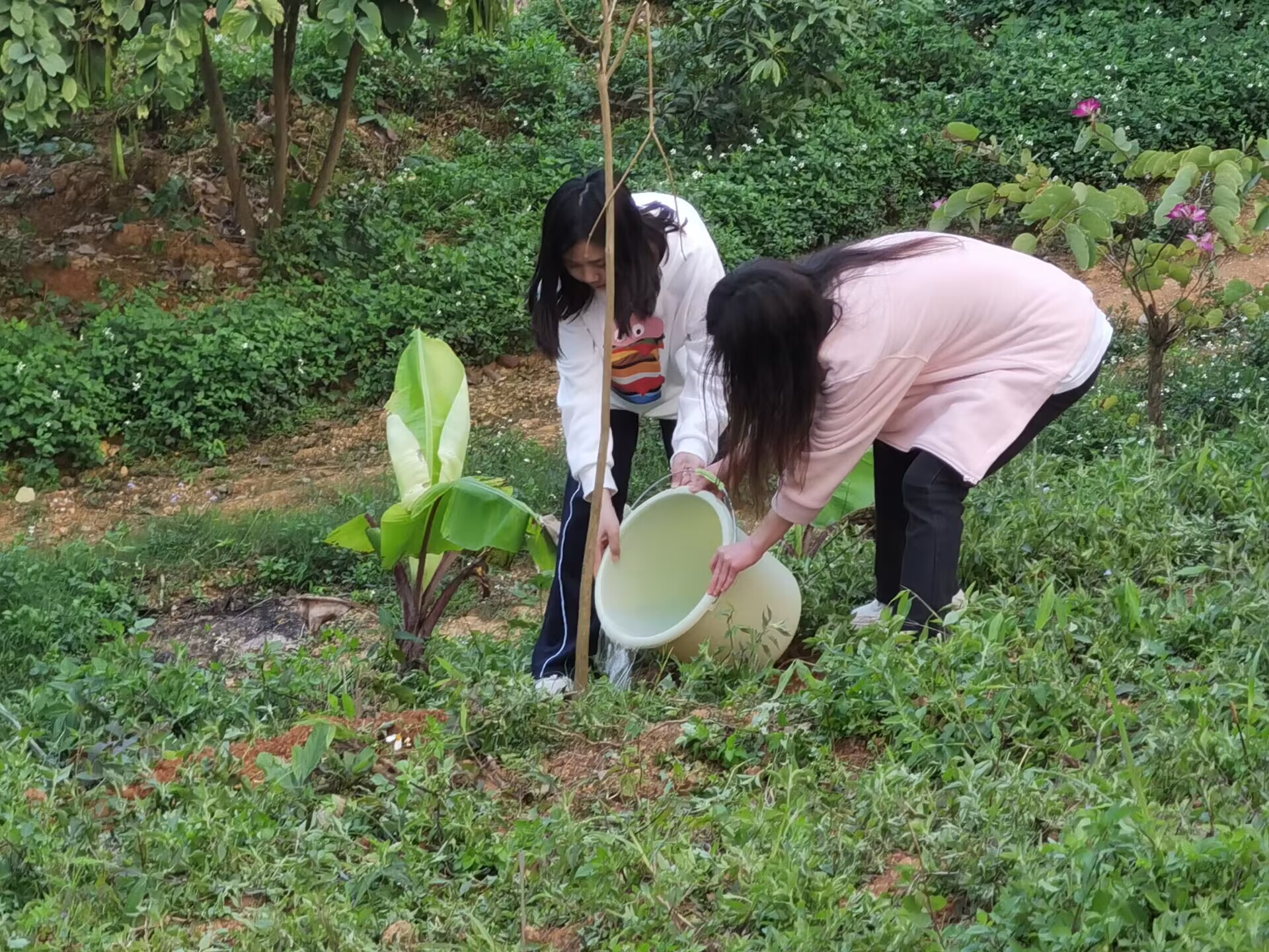 植樹現(xiàn)場(chǎng)熱火朝天,師生們紛紛擼起袖子,除草、揮鍬鏟土、扶苗固正、培土壓實(shí)、澆水灌溉,每一道工序都一絲不茍、銜接有序。師生交流栽種新樹、加強(qiáng)綠色生態(tài)發(fā)展的看法。植樹活動(dòng)中,大家分工明確,配合默契,干得熱火朝天。揮鏟之間,一棵棵新植向陽(yáng)而生。一鍬土,一桶水,澆灌的是生機(jī)和希望,承載的是大家的綠色環(huán)保夢(mèng)想。