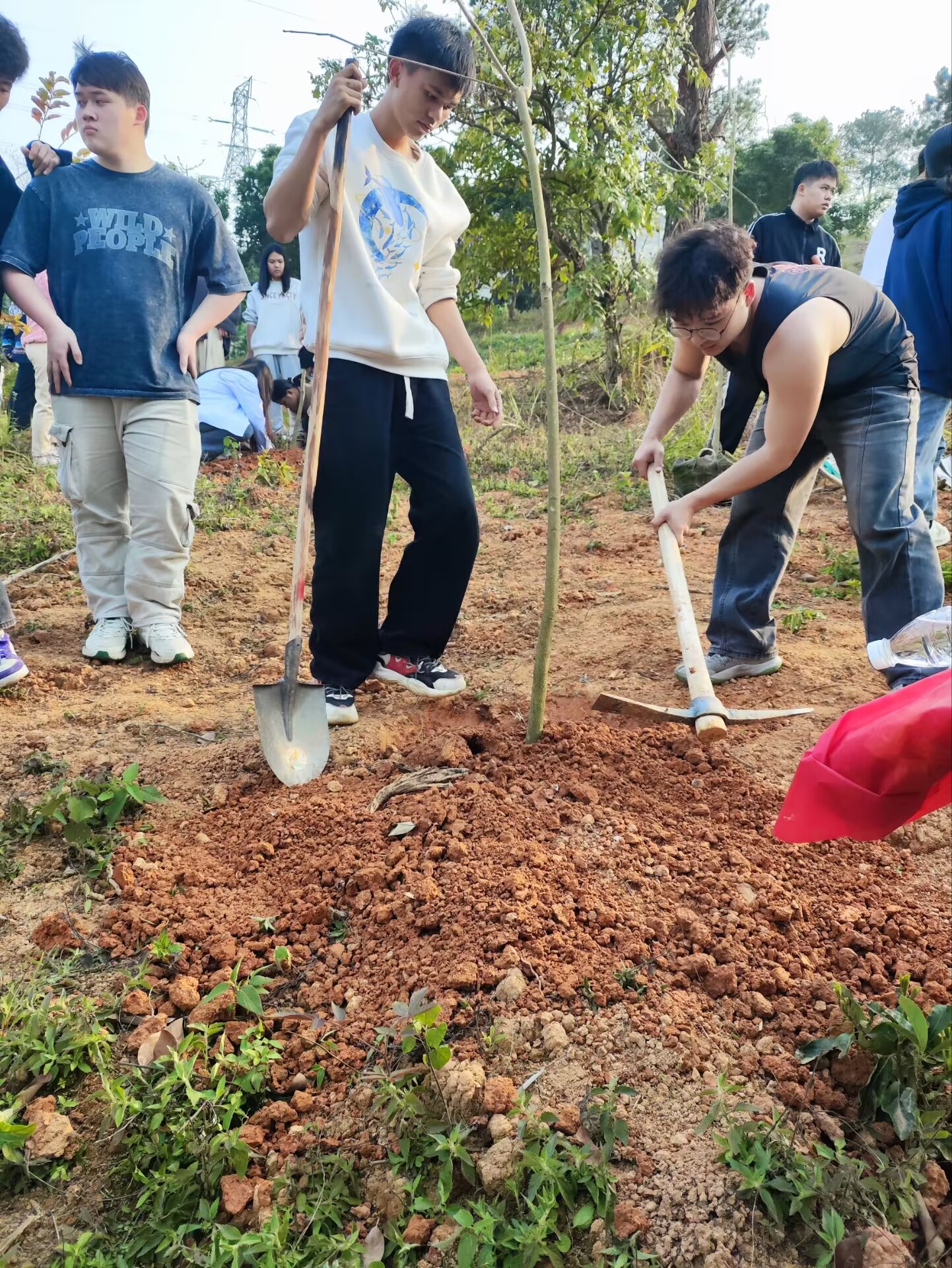 為踐行習(xí)近平總書記提出的“綠水青山就是金山銀山”的生態(tài)文明思想,引導(dǎo)廣大青年學(xué)生參與到植樹造林的行動(dòng)中來(lái),樹立“植綠、愛(ài)綠、護(hù)綠”的生態(tài)文明新風(fēng)尚。全國(guó)第46個(gè)植樹節(jié)到來(lái),3月12日下午,學(xué)院教師,輔導(dǎo)員。2022級(jí)2023級(jí)學(xué)生代表一起參加學(xué)院"凝心聚綠,共植綠美工程”植樹活動(dòng)中,為學(xué)院增添片片新綠。