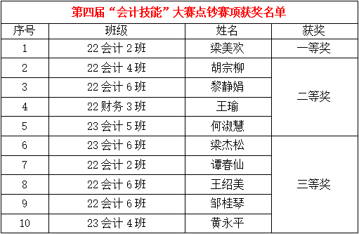 經(jīng)過激烈的比拼,各位參賽選手以學(xué)習(xí)交流經(jīng)驗,提高財會綜合技能為目的,賽出了風(fēng)格,賽出了水平,取得了優(yōu)異的成績。經(jīng)濟(jì)管理學(xué)院辦公室主任雷紅宣布第四屆會計技能大賽獲獎名單。