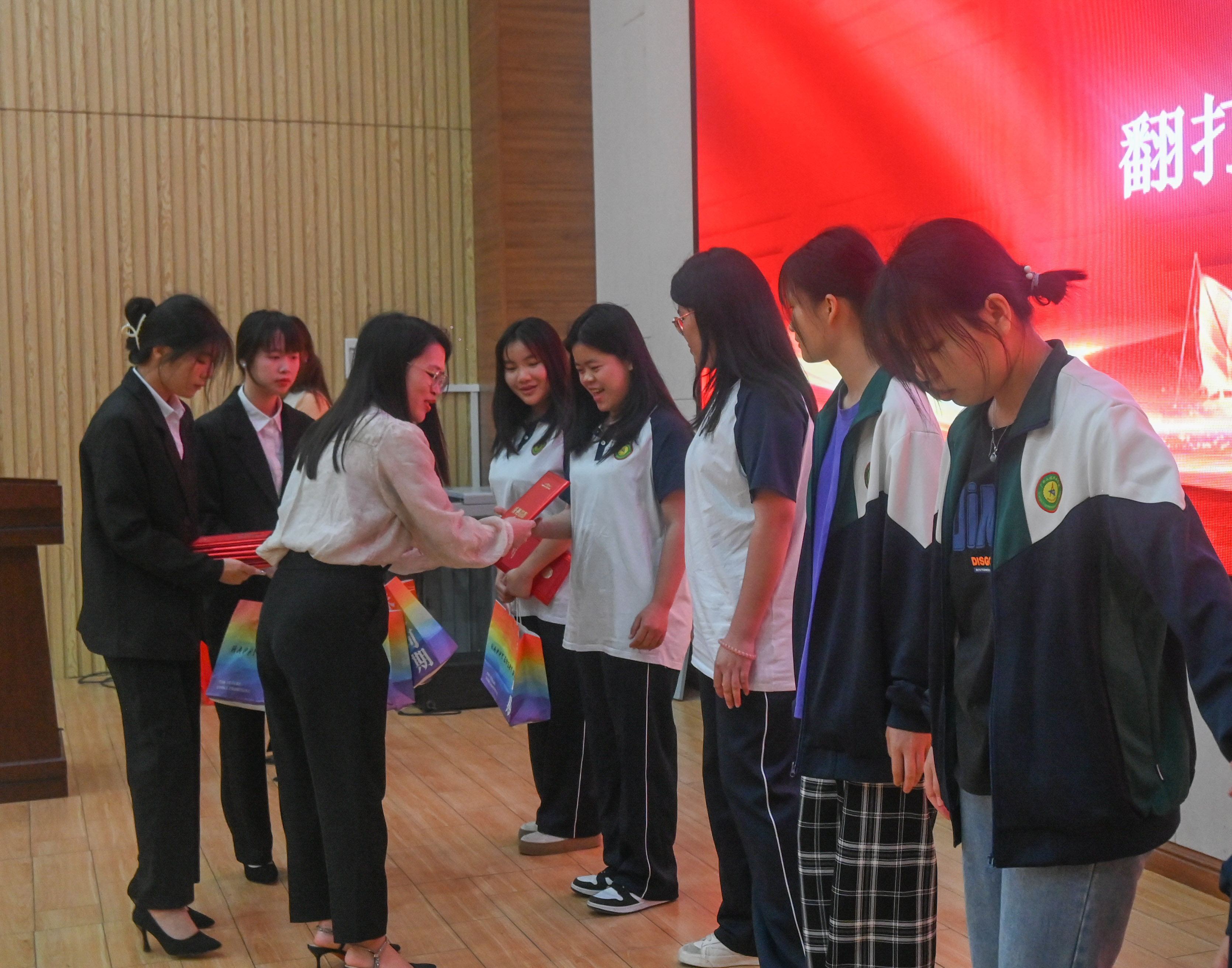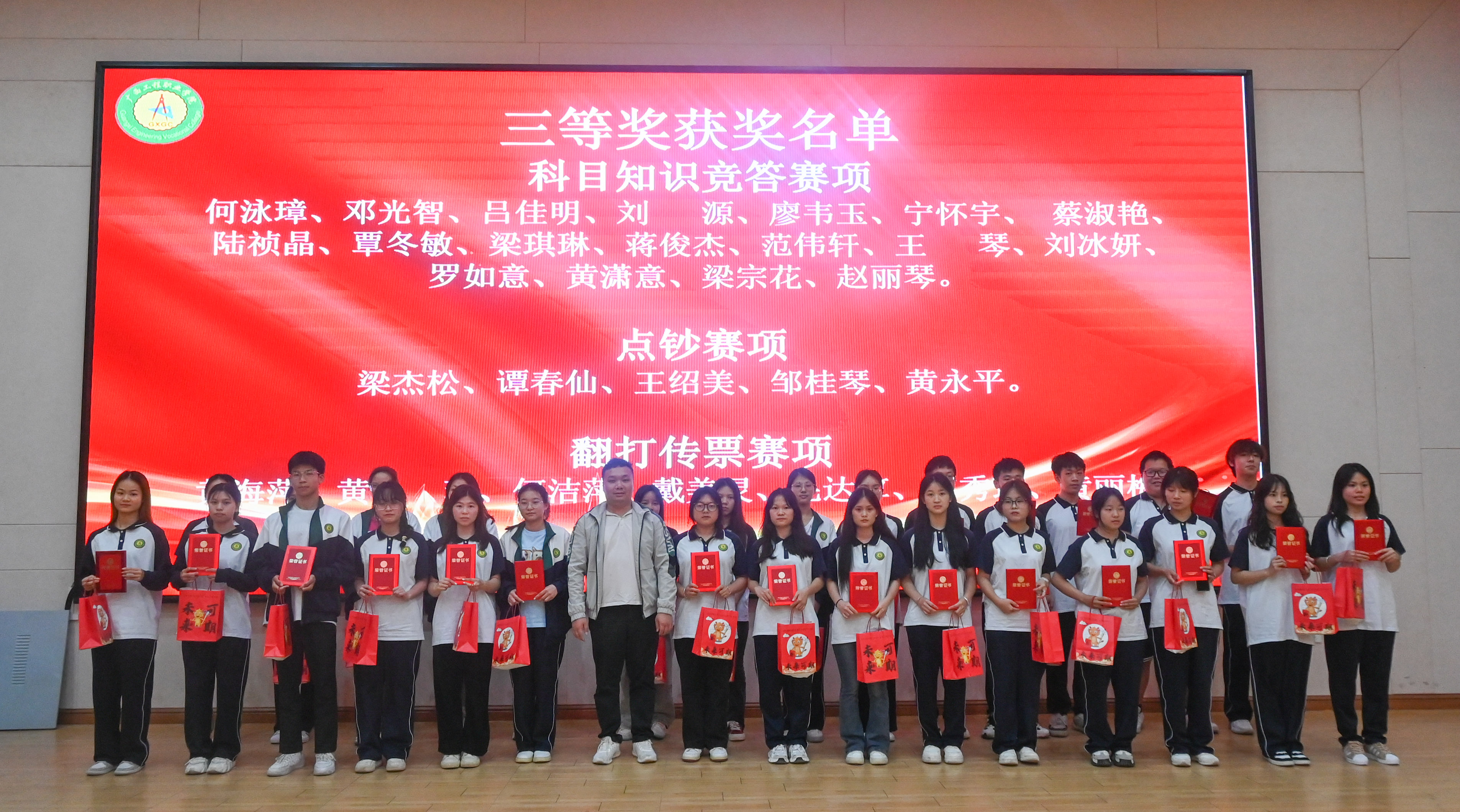 為獲得三等獎的同學(xué)頒發(fā)榮譽證書和獎品