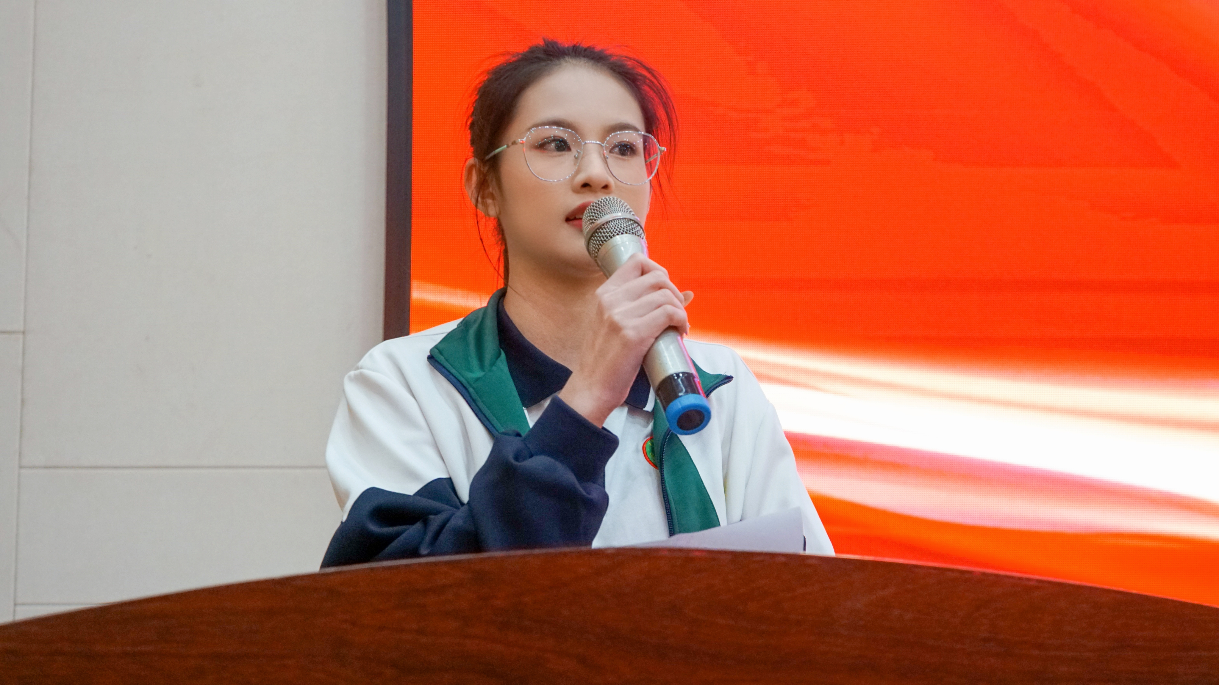 圖:獲獎學(xué)生丁乙珂同學(xué)代表發(fā)言