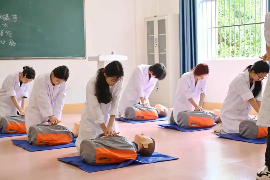 黃華老師通過(guò)實(shí)訓(xùn)課講授心肺復(fù)蘇的基本理論和心肺復(fù)蘇的實(shí)操程序,讓學(xué)生能快速識(shí)別心搏驟停、掌握實(shí)施心肺復(fù)蘇的技能。講課中,黃老師還強(qiáng)調(diào)了“時(shí)間就是生命”的急救理念,要求同學(xué)們要培養(yǎng)良好的職業(yè)道德,愛護(hù)、尊重患者,要有不怕臟、不怕累的吃苦精神和團(tuán)隊(duì)合作精神。