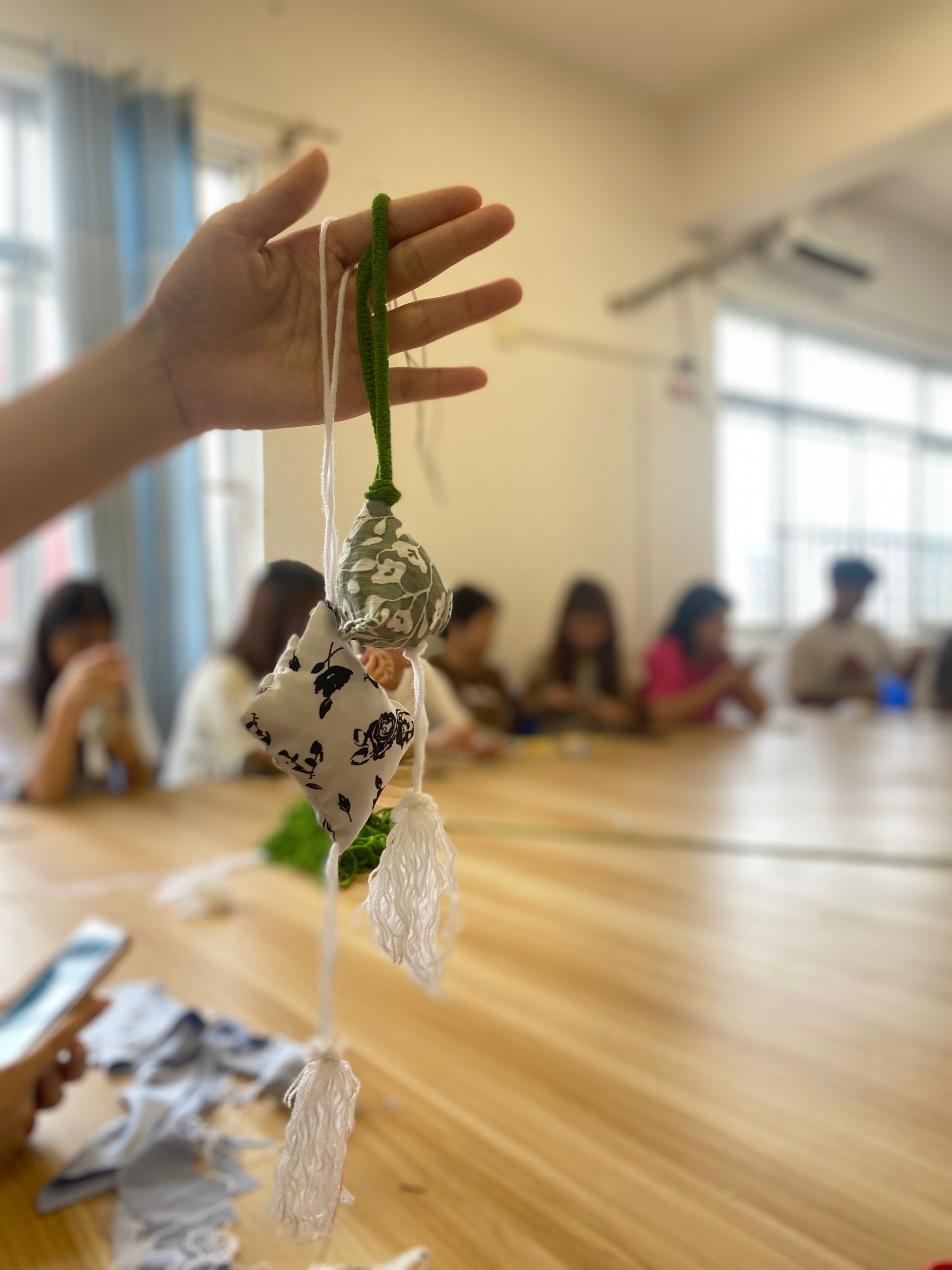 活動開始,大家有條不紊地按照步驟縫制香包,一針一線認(rèn)真縫制,不一會,一個個獨(dú)一無二的香囊呈現(xiàn)在眼前。大家按照按照教學(xué)步驟穿針引線、巧手翻飛,互相分享著制作香囊的經(jīng)驗(yàn),互相討論如何做出更加精美的香囊包。制作完成后,大家舉著親手縫制的香囊滿是喜悅,活動現(xiàn)場更是彌漫著一股淡淡的艾草芳香。
