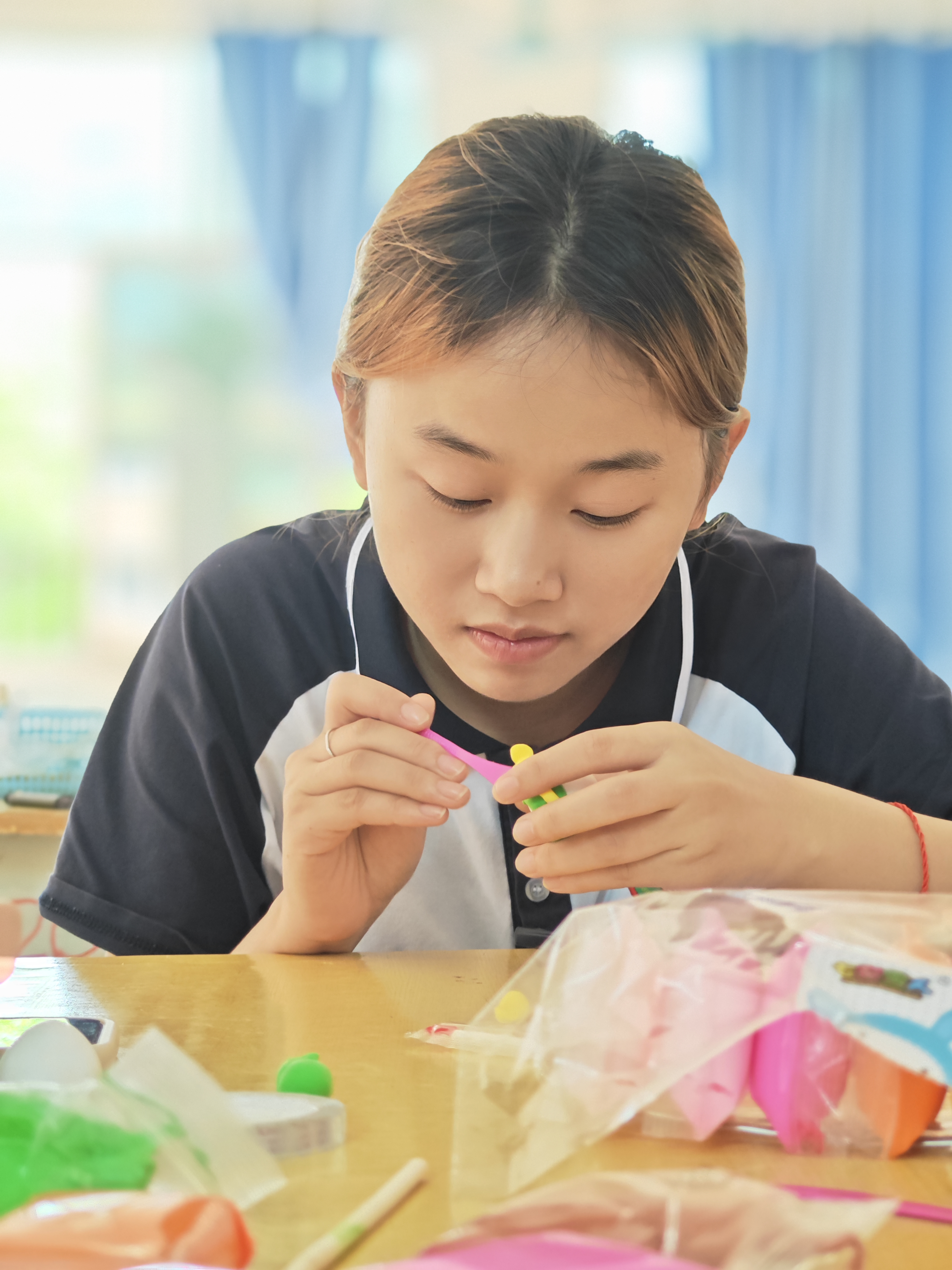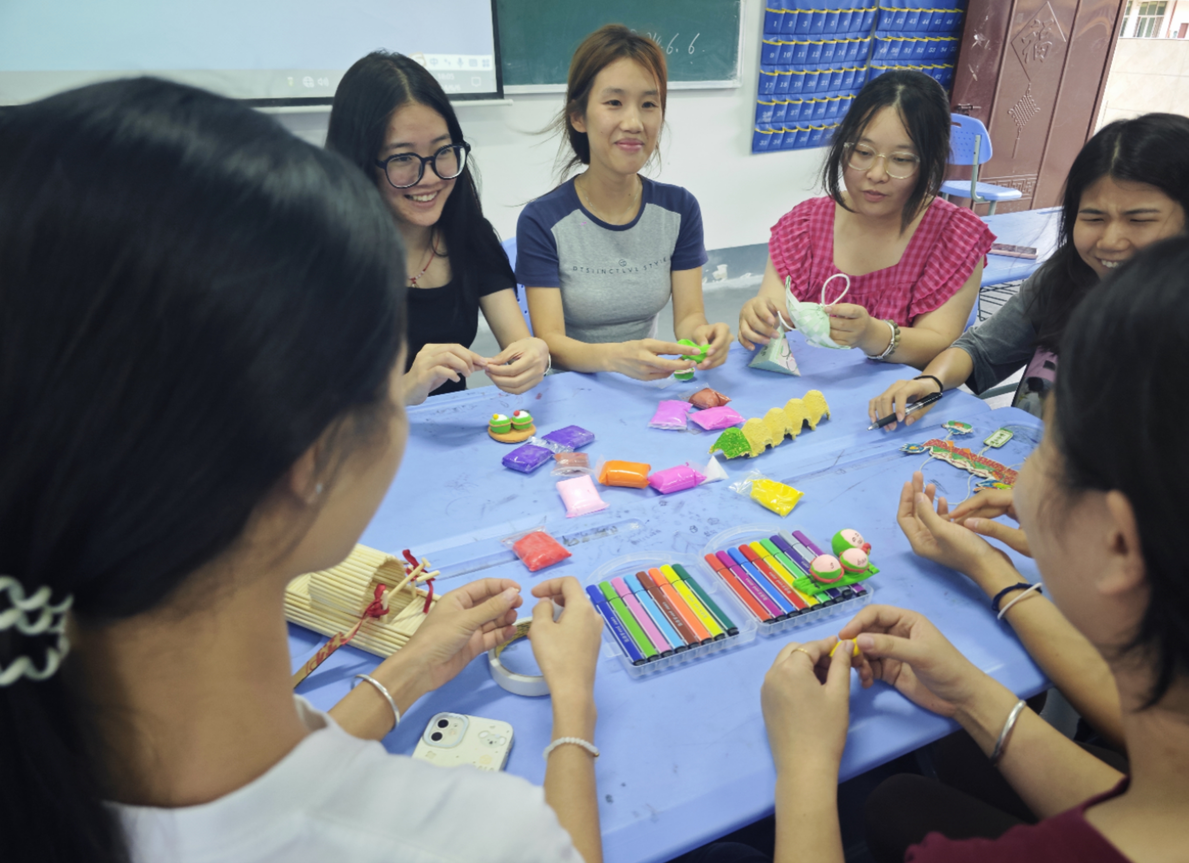 學(xué)生們制作了竹編龍舟、創(chuàng)意黏土粽子、等豐富多彩、各具特色的手工藝品。創(chuàng)意黏土粽子融入現(xiàn)代審美,獨(dú)一無二,體現(xiàn)了學(xué)生們的創(chuàng)造力和手工技能。展示了高超的藝術(shù)技巧和對傳統(tǒng)文化的深刻理解。師生在與非遺文化的邂逅中收獲了一份專屬于自己的禮物。