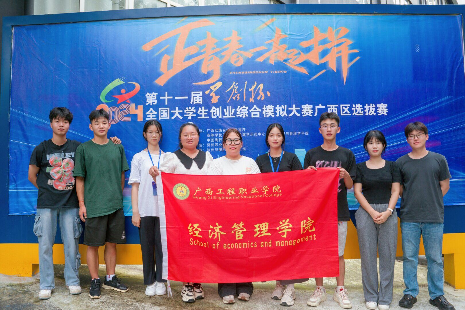 圖為經(jīng)濟管理學院學院參賽學生賽后合影
