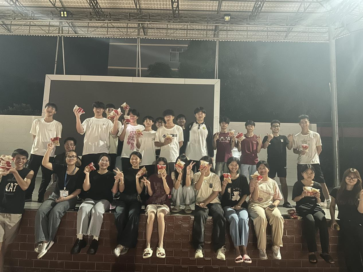 晚上,校園跑道上歡聲笑語不斷,學校精心準備的月餅和水果,每一塊月餅都承載著老師對學生們的殷切期望和滿滿祝福。同學們圍坐一起,共賞圓月,品嘗著這份來自老師的特別禮物,臉上洋溢著幸福與感激的笑容。水果的甜蜜與節(jié)日的喜慶交織在一起,讓整個校園充滿了家的溫暖。