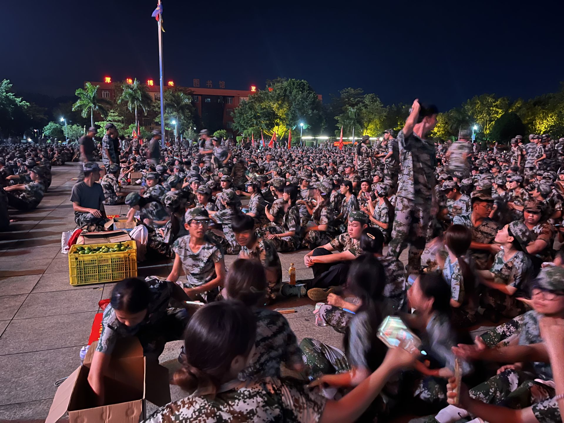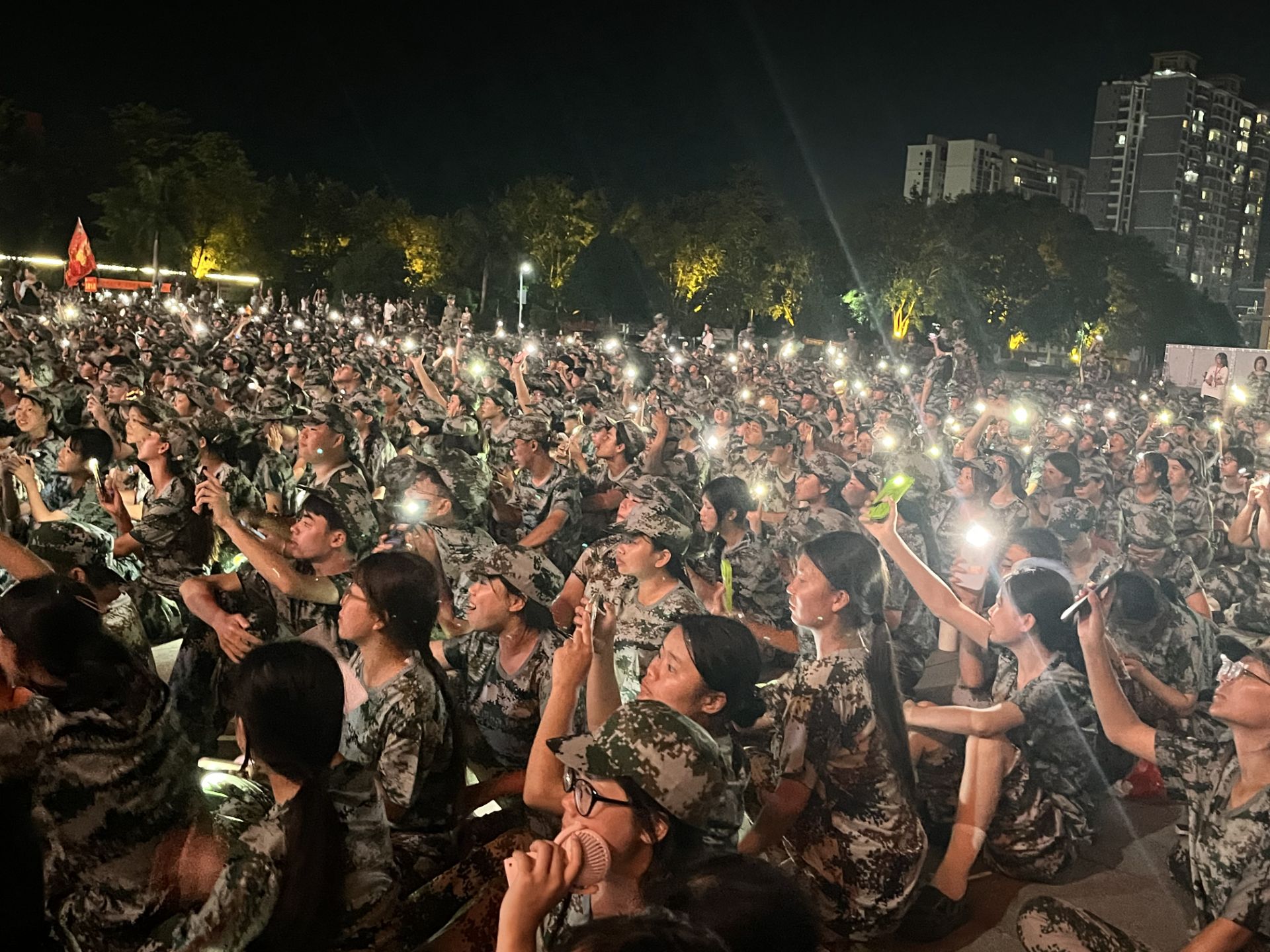 當圓月高掛璀璨夜空,晨曦降下,夜晚的軍訓表演亦是青春的波瀾。