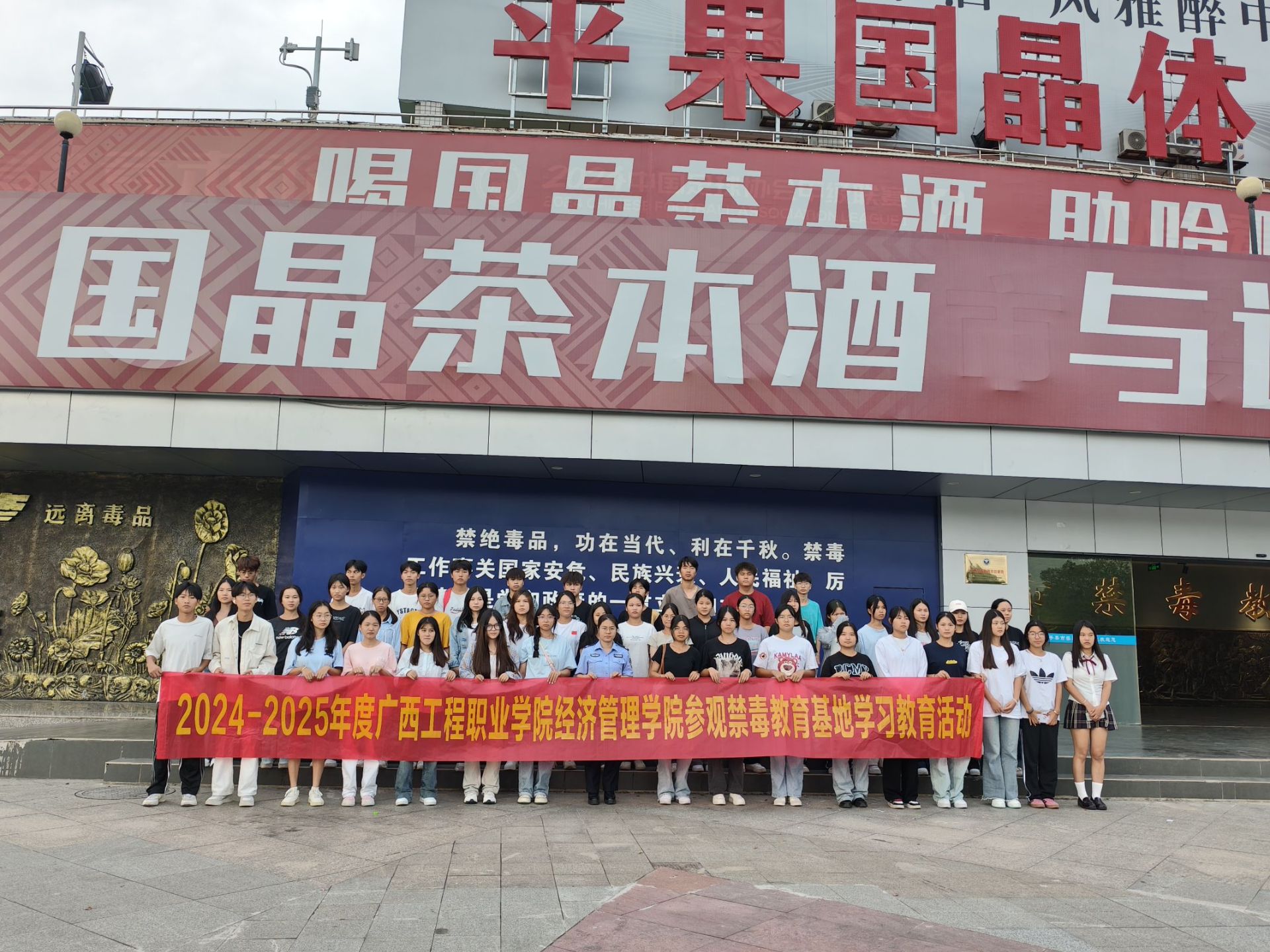 為深入貫徹落實習近平總書記關(guān)于禁毒工作的重要指示精神,進一步加強禁毒教育工作,強化學生識毒、防毒、拒毒的意識和能力,培養(yǎng)學生形成“珍愛生命、遠離毒品”“健康人生、綠色無毒”的理念。2024年10月14日-15日,在學校學生工作處指導下,經(jīng)濟管理學院2023級、2024級學生代表統(tǒng)一前往平果市禁毒教育基地進行教育活動?;顒佑筛靼嗉壿o導員組織帶隊。