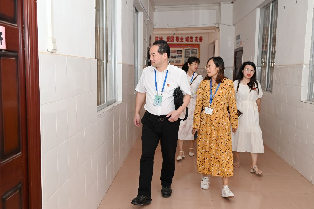 圖為學(xué)校黨委書記蒙本曼、黨委副書記黃秋霞,黨委辦公室副主任黃香琴等陪同調(diào)研