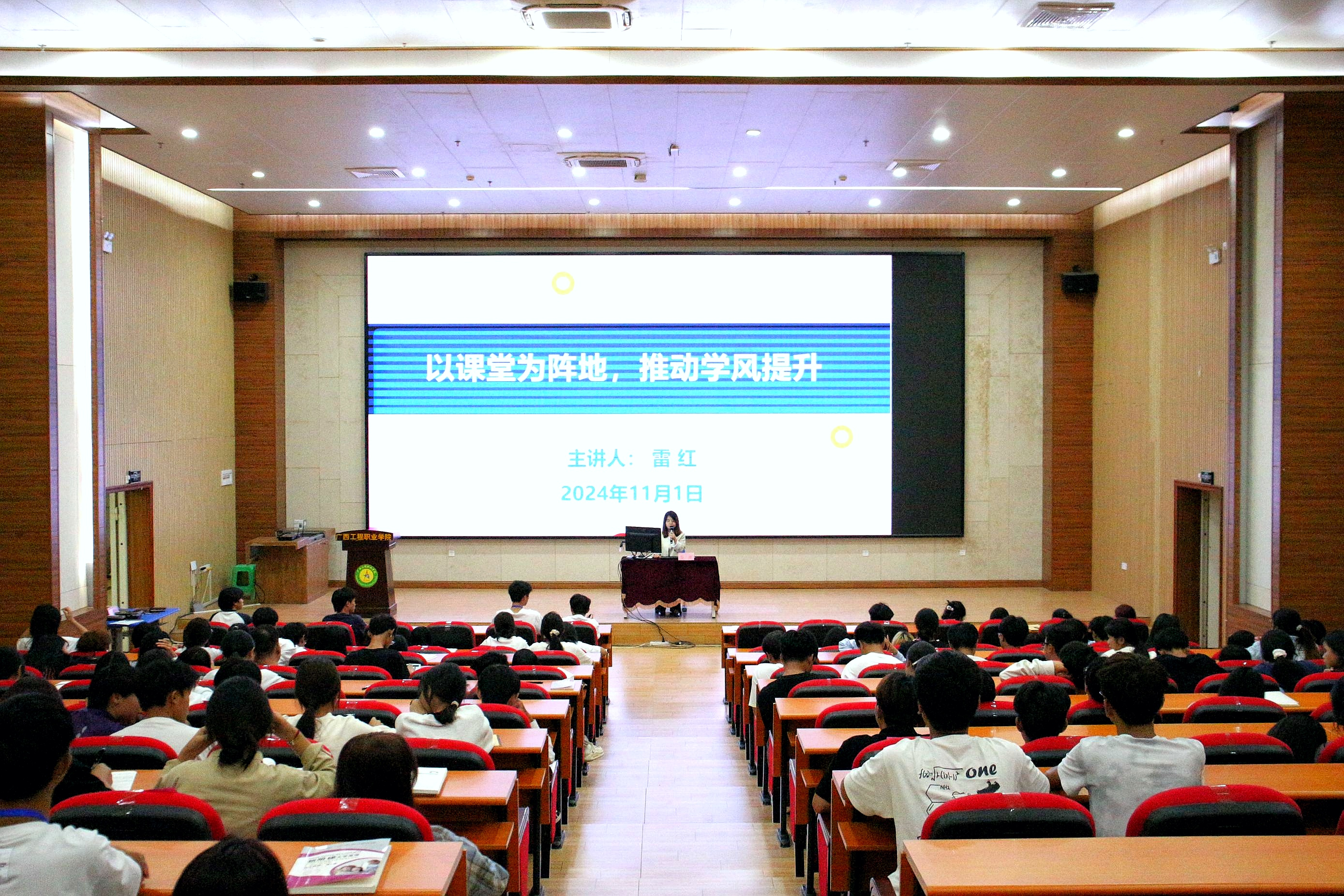 經(jīng)濟(jì)管理學(xué)院辦公室主任雷紅作《以課堂為陣地,推動(dòng)學(xué)風(fēng)建設(shè)》專題培訓(xùn)。她強(qiáng)調(diào)學(xué)生須遵守課堂紀(jì)律,積極參與課堂教學(xué)活動(dòng),要尊敬老師,講究文明禮貌,不得隨意進(jìn)出或擅自離開教室。