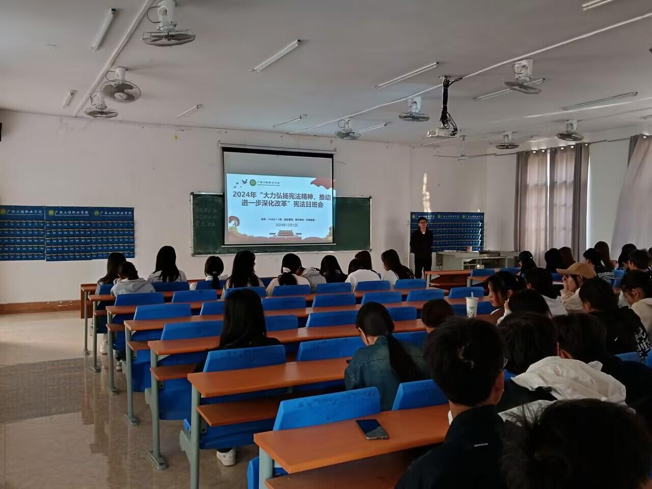 12月4日是國家第11個國家憲法日,也迎來全國第七個憲法宣傳周。為弘揚憲法精神,樹立憲法權威,增強廣大師生法治意識,推動法治實踐。借此契機,12月2日經(jīng)濟管理各班開展“大力弘揚憲法精神,推動進一步全面深化改革”的主題班會活動。