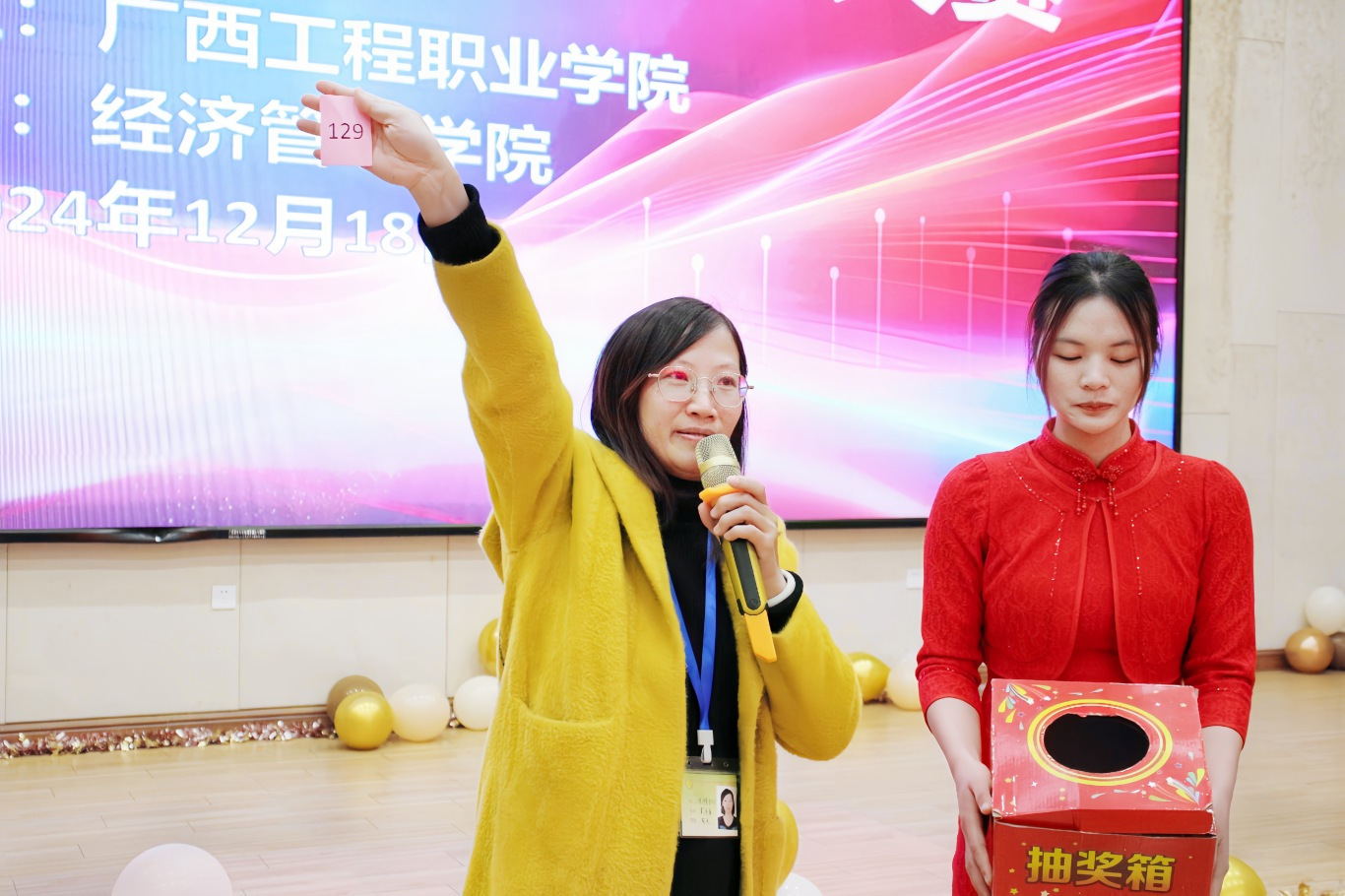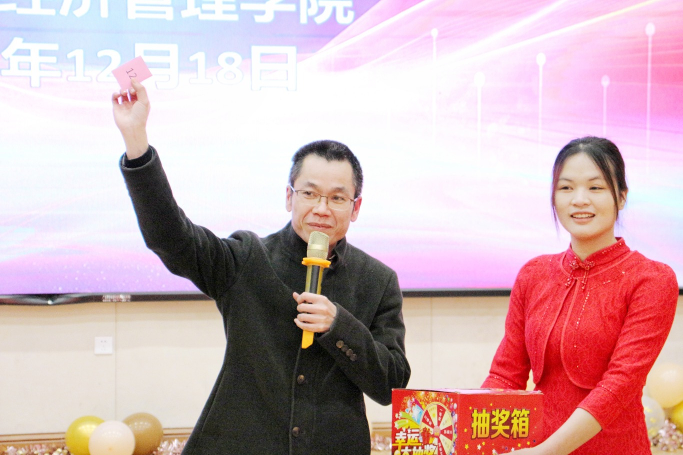 圖為學(xué)院辦公室主任雷紅現(xiàn)場抽取6名幸運(yùn)兒