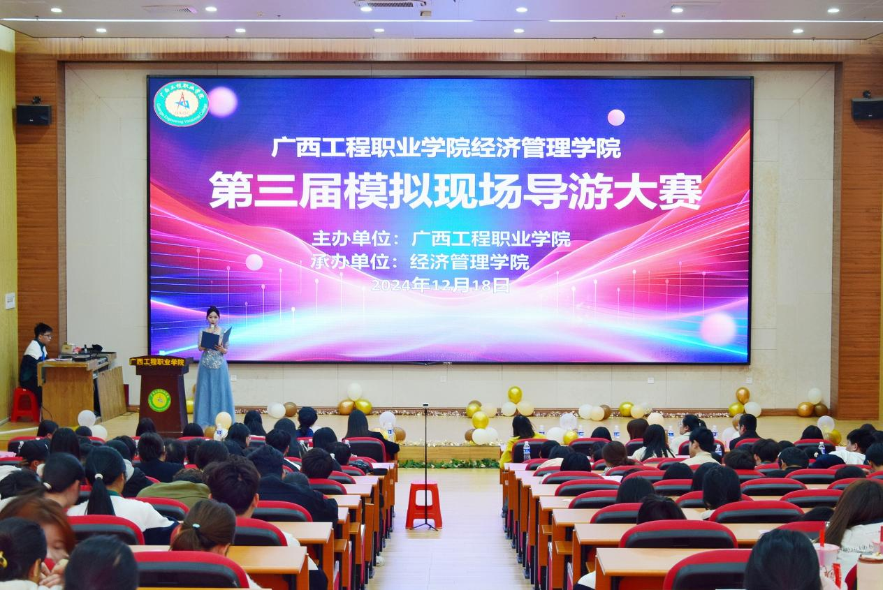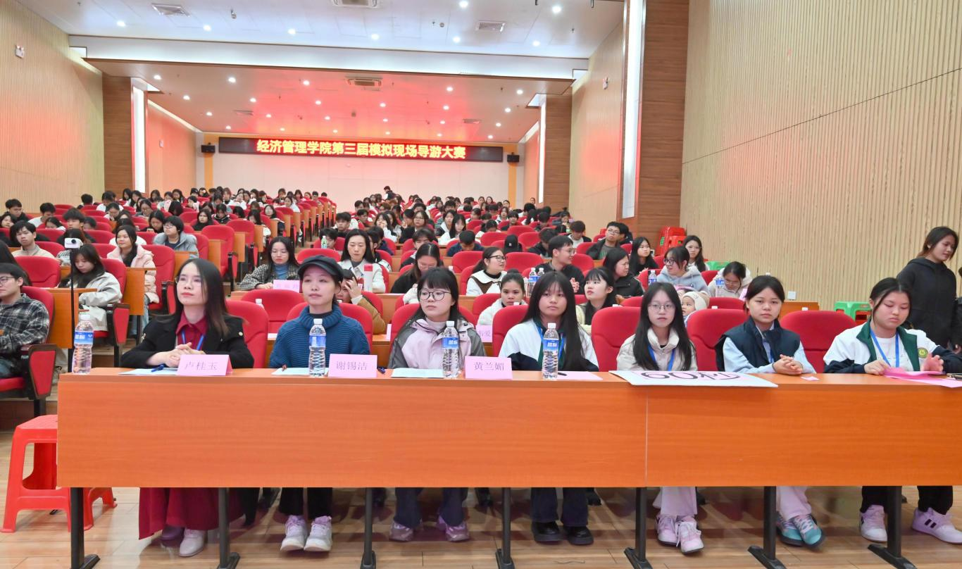 2024年12月18日,經(jīng)濟(jì)管理學(xué)院在學(xué)校圖文信息大樓一樓報告廳舉行第三屆“魅力導(dǎo)游,智慧領(lǐng)航”模擬現(xiàn)場導(dǎo)游大賽。本次大賽旨在通過展現(xiàn)導(dǎo)游風(fēng)采、以賽促學(xué)、以賽帶訓(xùn),激勵學(xué)生不斷加強(qiáng)業(yè)務(wù)知識的學(xué)習(xí)和技能訓(xùn)練,培養(yǎng)符合社會發(fā)展需要的高質(zhì)量的旅游服務(wù)人才。