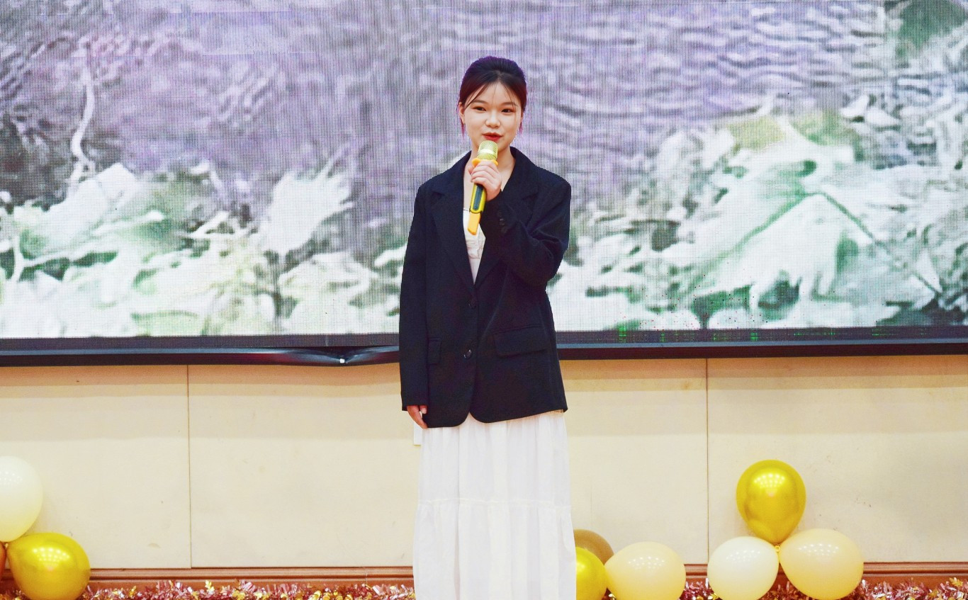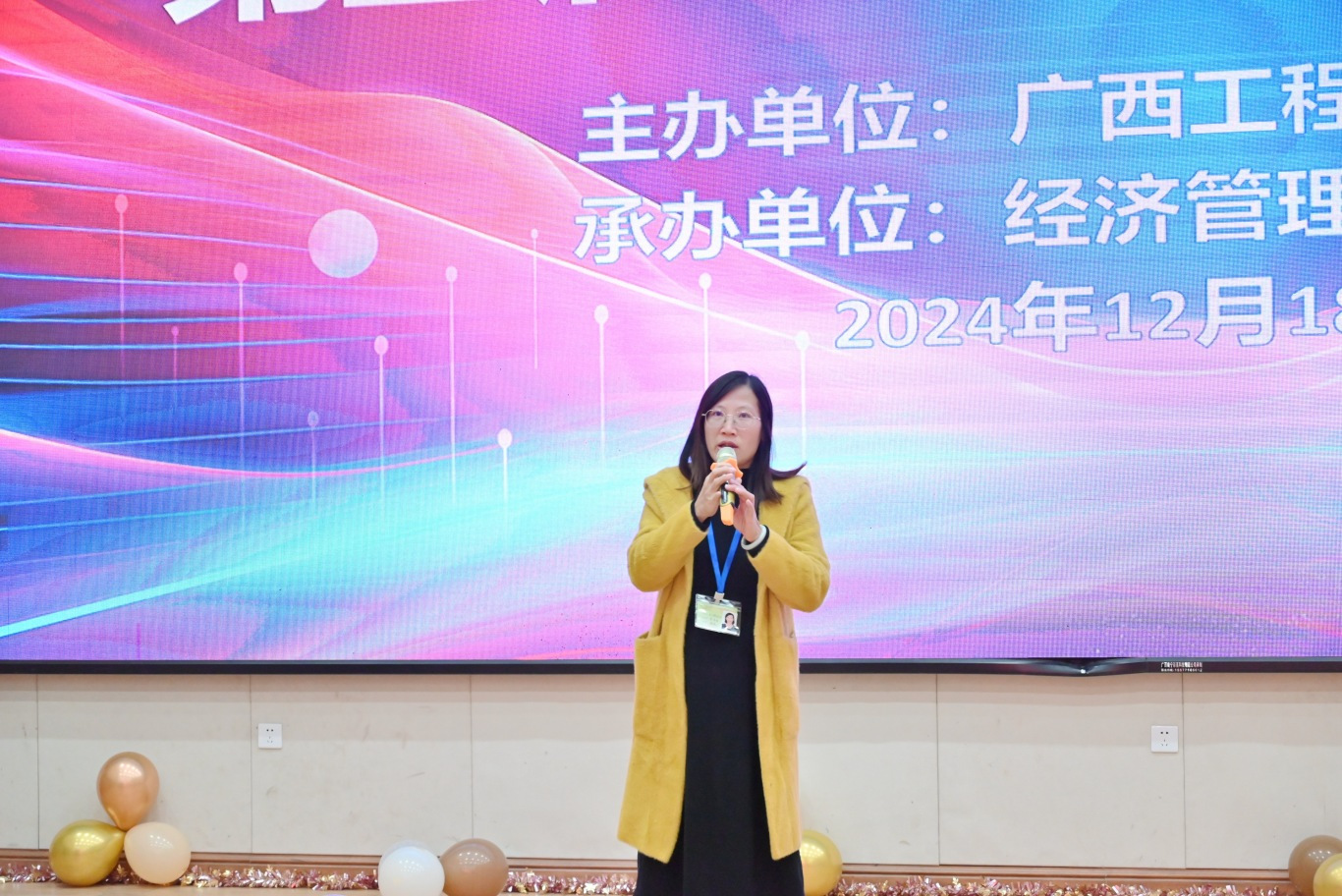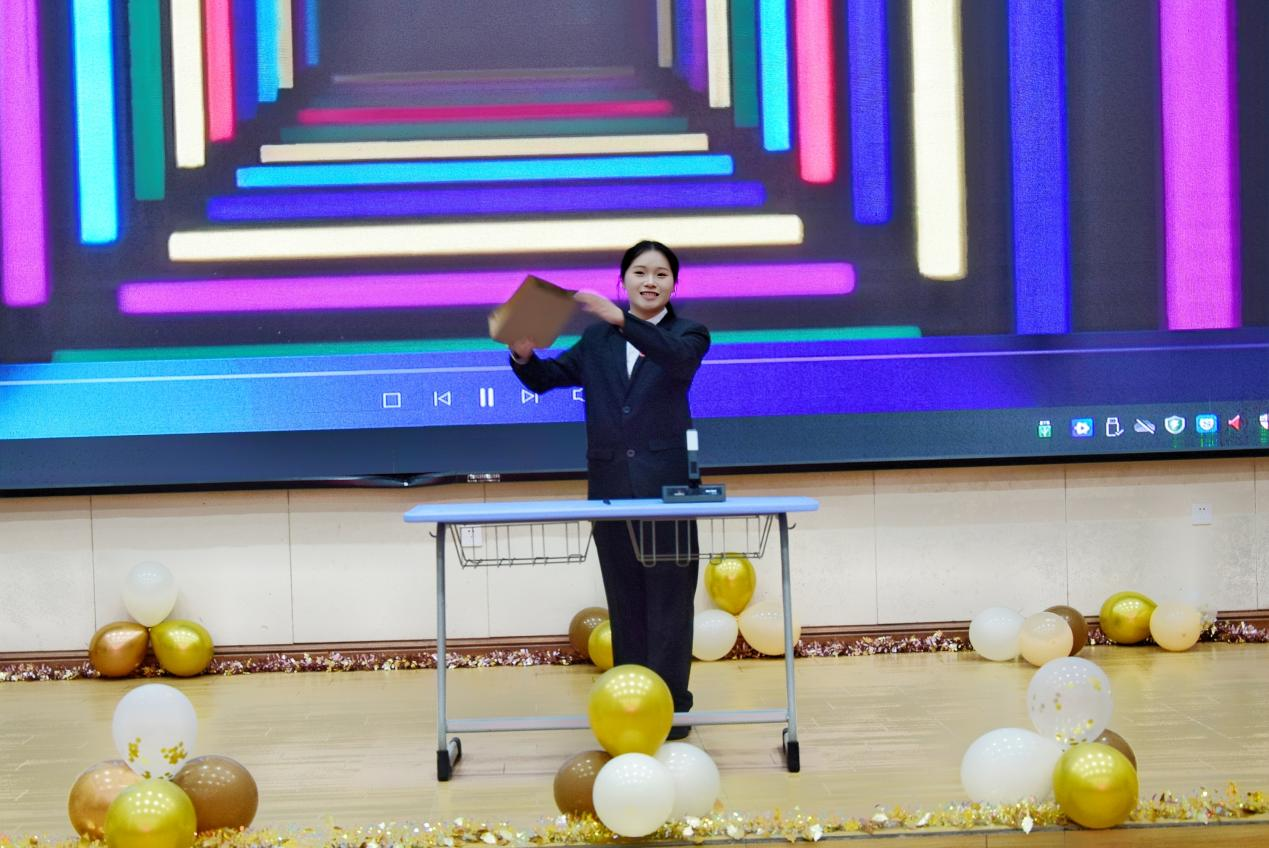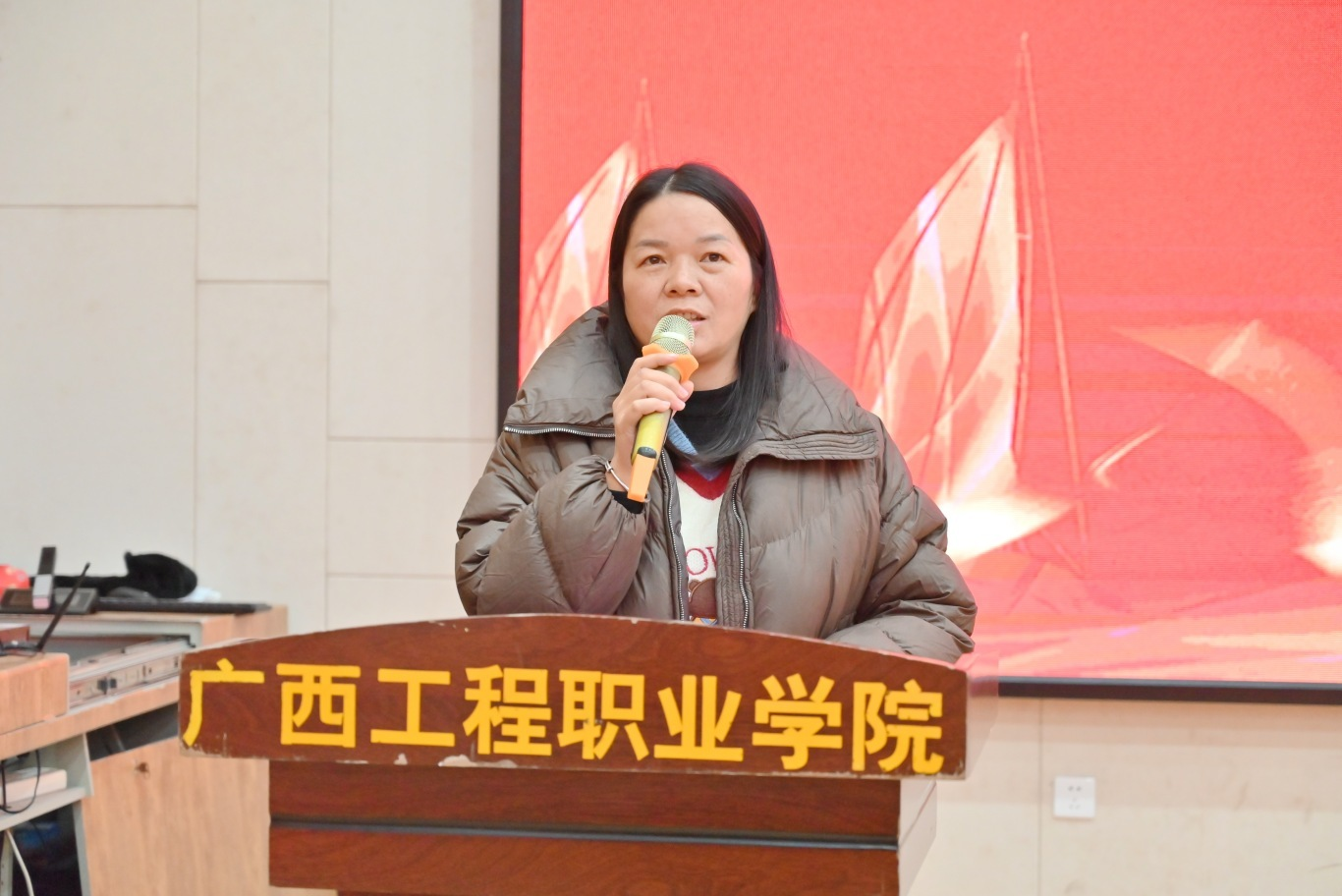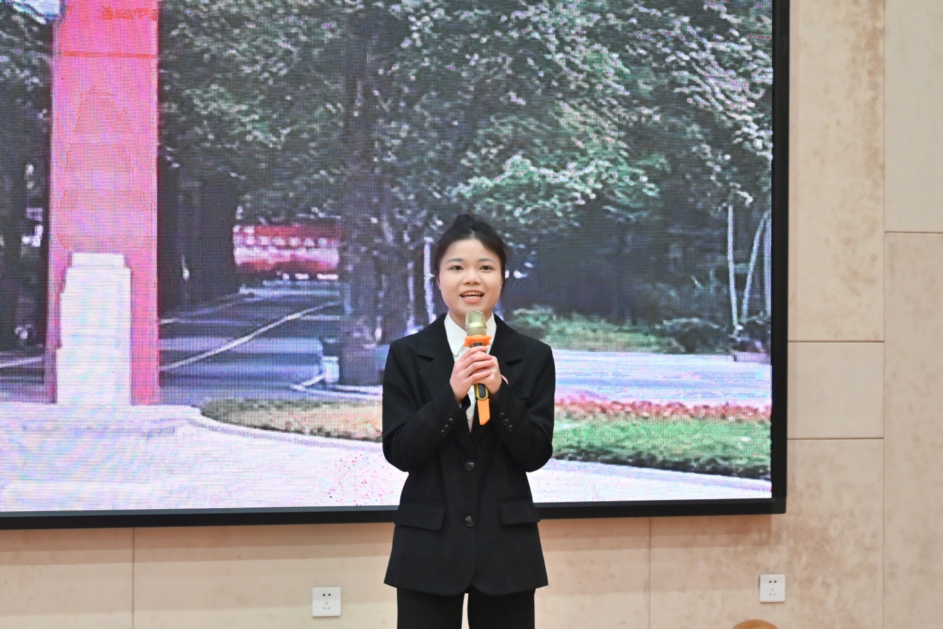 圖為學(xué)院黨支部副書記潘翠萍宣布比賽獲獎名次