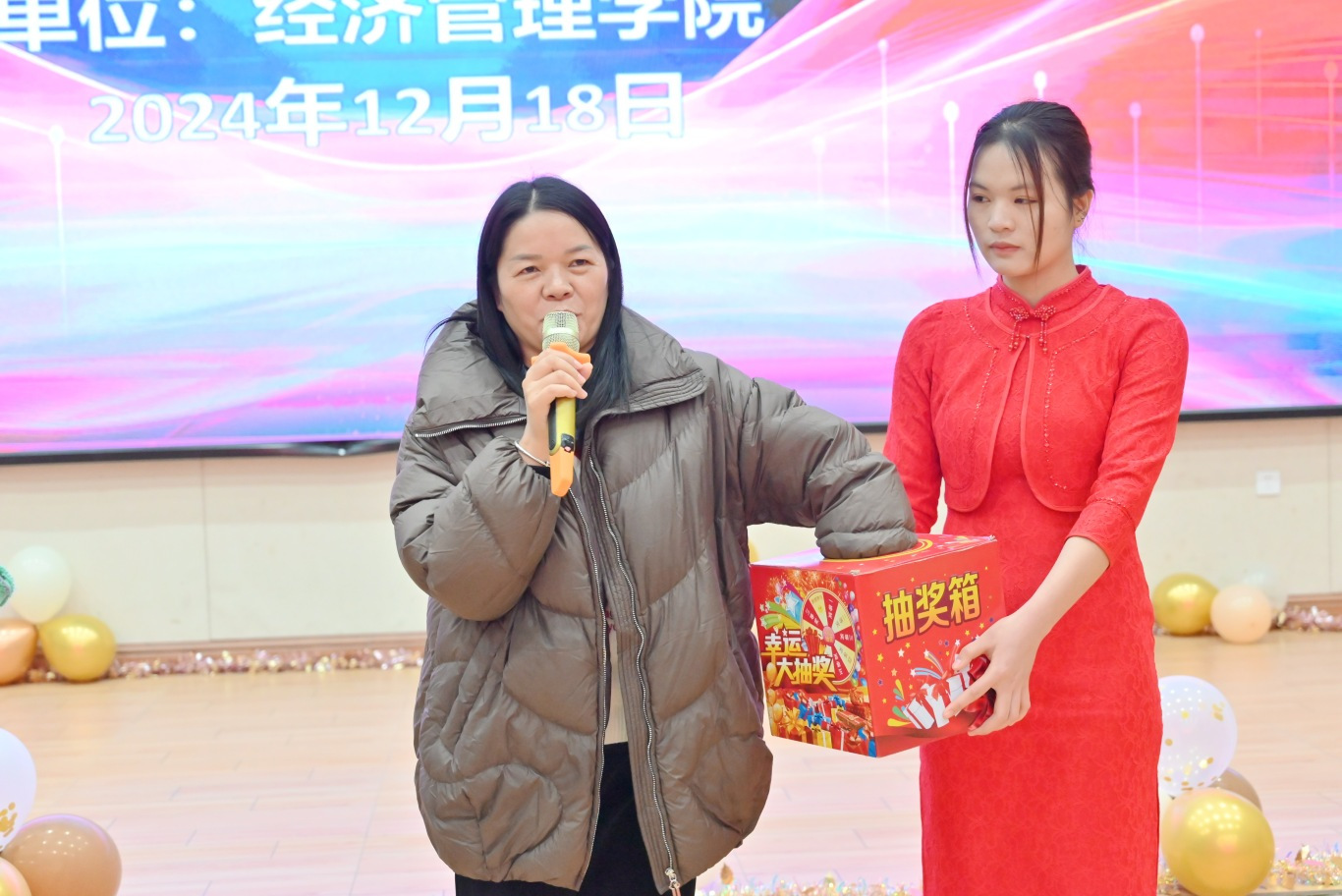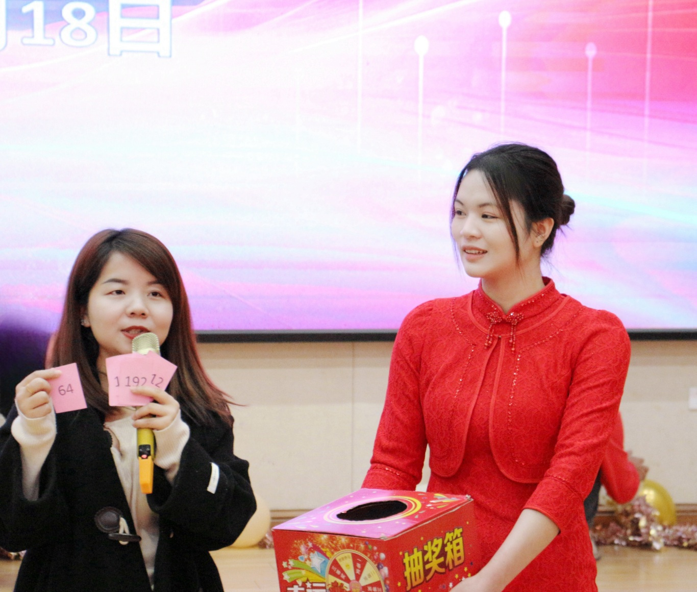 圖為財務(wù)處老師李裕萍現(xiàn)場抽取6名幸運(yùn)兒