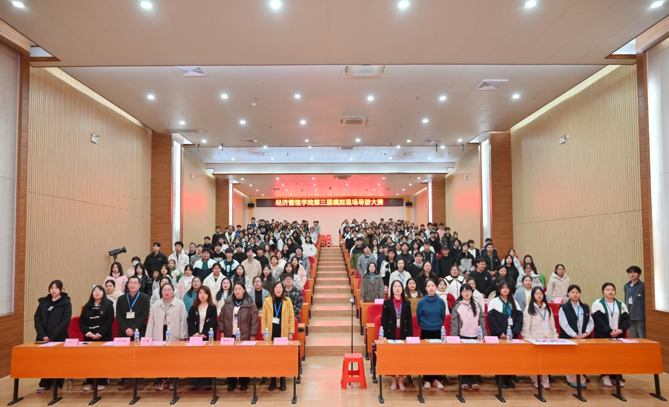 圖為經(jīng)濟(jì)管理學(xué)院第三屆模擬導(dǎo)游大賽現(xiàn)場