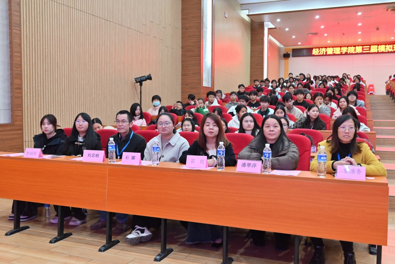 學(xué)院黨支部書記、院長覃清香,財務(wù)處老師李裕萍,學(xué)院黨支部副書記潘翠萍,學(xué)院辦公室主任雷紅,學(xué)院工商管理教研室主任劉忠略,學(xué)院財會教研室副主任石娜出席本次比賽,學(xué)院全體專任教師、輔導(dǎo)員、學(xué)生代表到場觀看比賽。