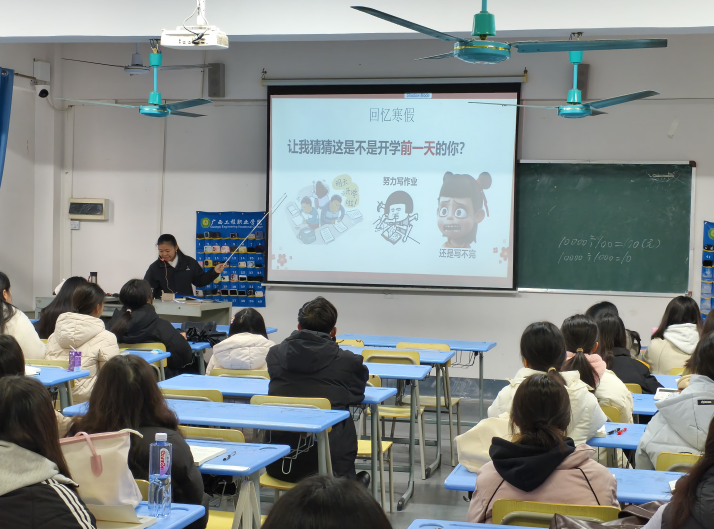 各年級(jí)輔導(dǎo)員及任課教師結(jié)合熱門(mén)國(guó)漫IP《哪吒之魔童鬧?!罚蕴艺嫒说闹腔蹖?dǎo)師形象,將“我命由我不由天”的熱血勇敢精神注入教育實(shí)踐,從學(xué)情分析、誠(chéng)信考試、安全管理、心理健康、防詐騙、春季傳染病預(yù)防等多個(gè)方面展開(kāi)講解,助力學(xué)生實(shí)現(xiàn)認(rèn)知轉(zhuǎn)換、目標(biāo)重構(gòu),促進(jìn)學(xué)生行為習(xí)慣養(yǎng)成。2024級(jí)輔導(dǎo)員結(jié)合上一學(xué)期學(xué)習(xí)和入學(xué)適應(yīng)情況,從學(xué)業(yè)規(guī)劃與職業(yè)生涯規(guī)劃的角度對(duì)2024級(jí)學(xué)生進(jìn)行引導(dǎo),以“只要敢于改變,就會(huì)有無(wú)限可能”的燃情寄語(yǔ)收束,喚醒學(xué)生學(xué)業(yè)精進(jìn)、同窗共進(jìn)、自我革新的成長(zhǎng)內(nèi)驅(qū)力,幫助同學(xué)們迅速適應(yīng)新學(xué)期的學(xué)習(xí)生活,以積極飽滿的狀態(tài)迎接新的挑戰(zhàn)。