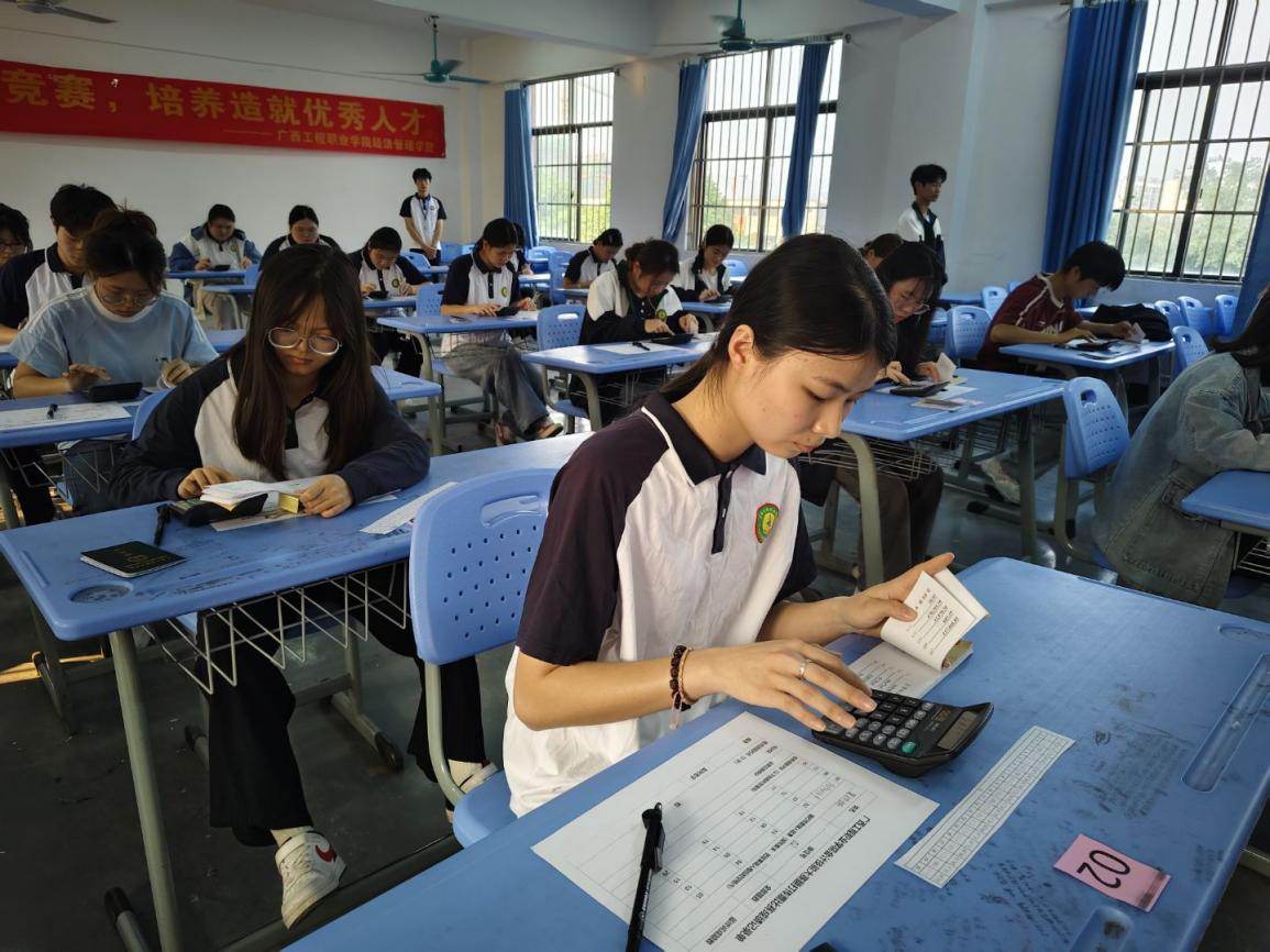 數(shù)字世界的交響樂章翻打傳票賽場儼然成為計算器的鍵盤協(xié)奏曲。選手們左手翻頁如風(fēng),右手輸入似電,手指快捷、輕靈地游走在各個數(shù)字和符號之間,沒有片刻中斷。比賽現(xiàn)場呈現(xiàn)出職業(yè)競技中專業(yè)而緊張的氛圍。敏捷的反應(yīng)與熟練的指法,展現(xiàn)出財會學(xué)子對職業(yè)技能日益駕輕就熟、嚴謹認真的職業(yè)態(tài)度。