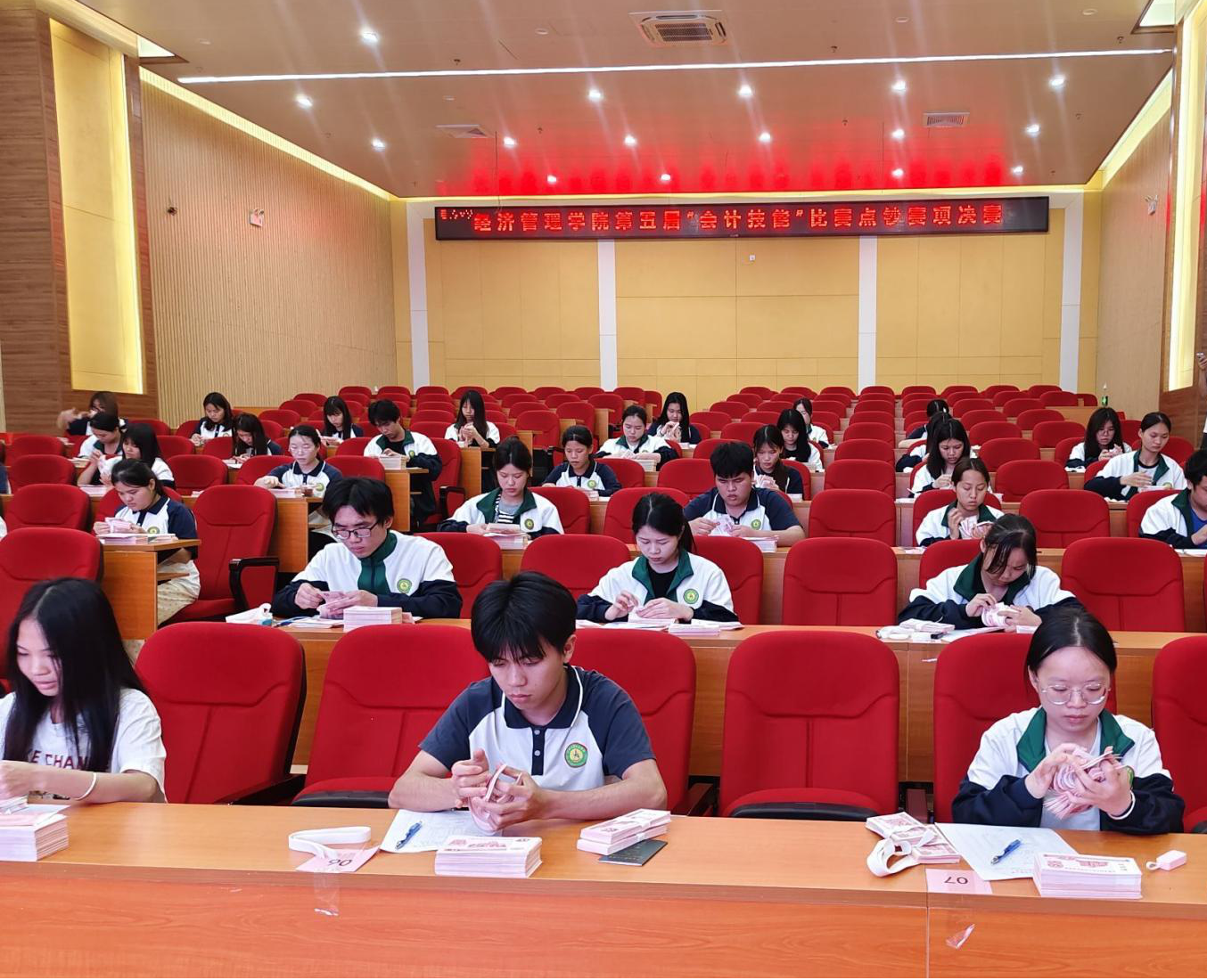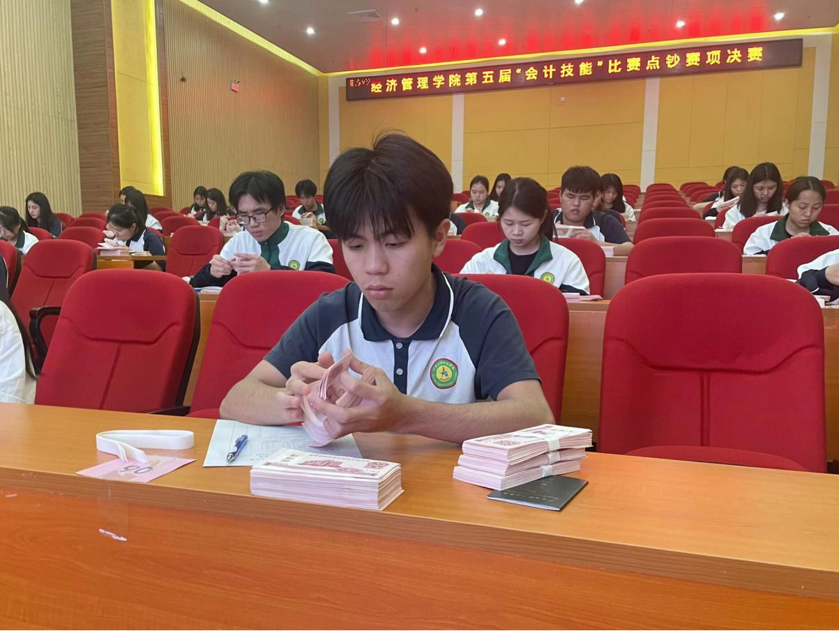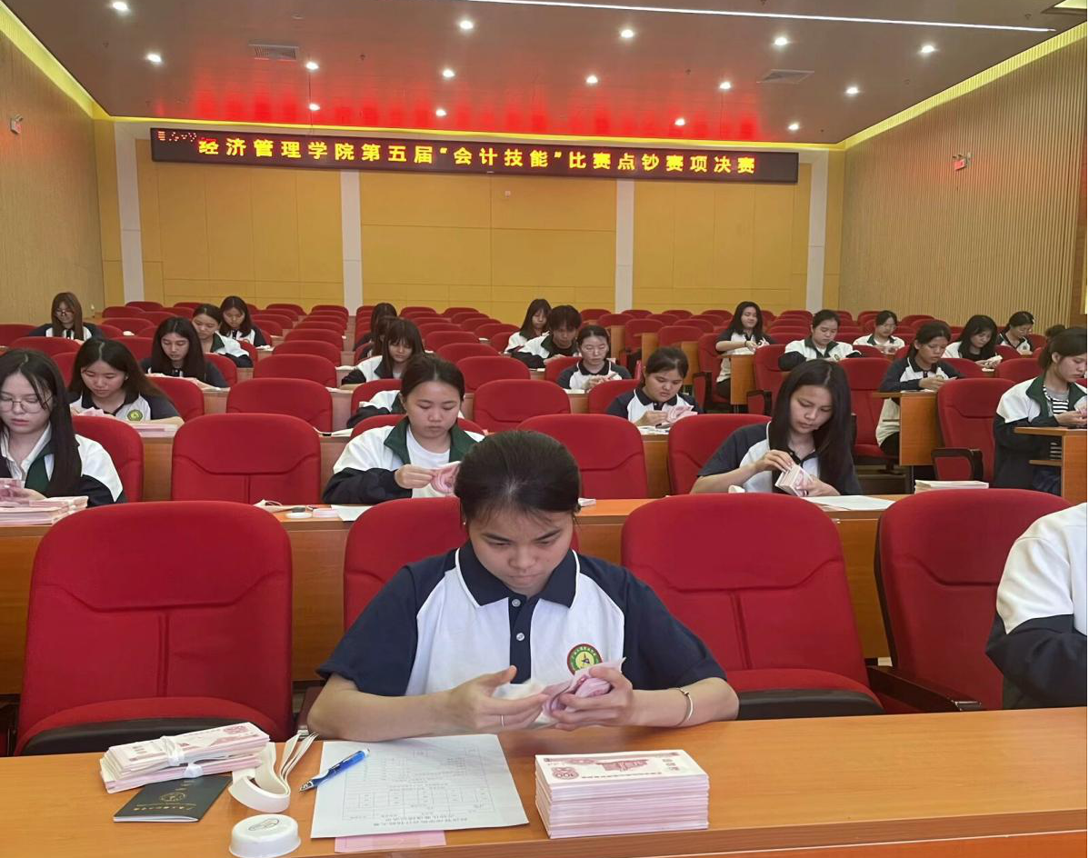 在數(shù)字經(jīng)濟與傳統(tǒng)文化交融共生的時代背景下,經(jīng)濟管理學(xué)院于2025年3月25日成功舉辦第五屆會計技能大賽。本屆賽事以”賽出水平,展現(xiàn)風(fēng)采,鑄就會計人才”為主題,在圖文信息大樓五樓、經(jīng)管304實訓(xùn)室及第二教學(xué)樓多個賽場同步展開,設(shè)置點鈔、翻打傳票、珠算(非遺)、電算小能手四大競賽單元,構(gòu)建起傳統(tǒng)技藝與現(xiàn)代技術(shù)交相輝映的育人平臺。