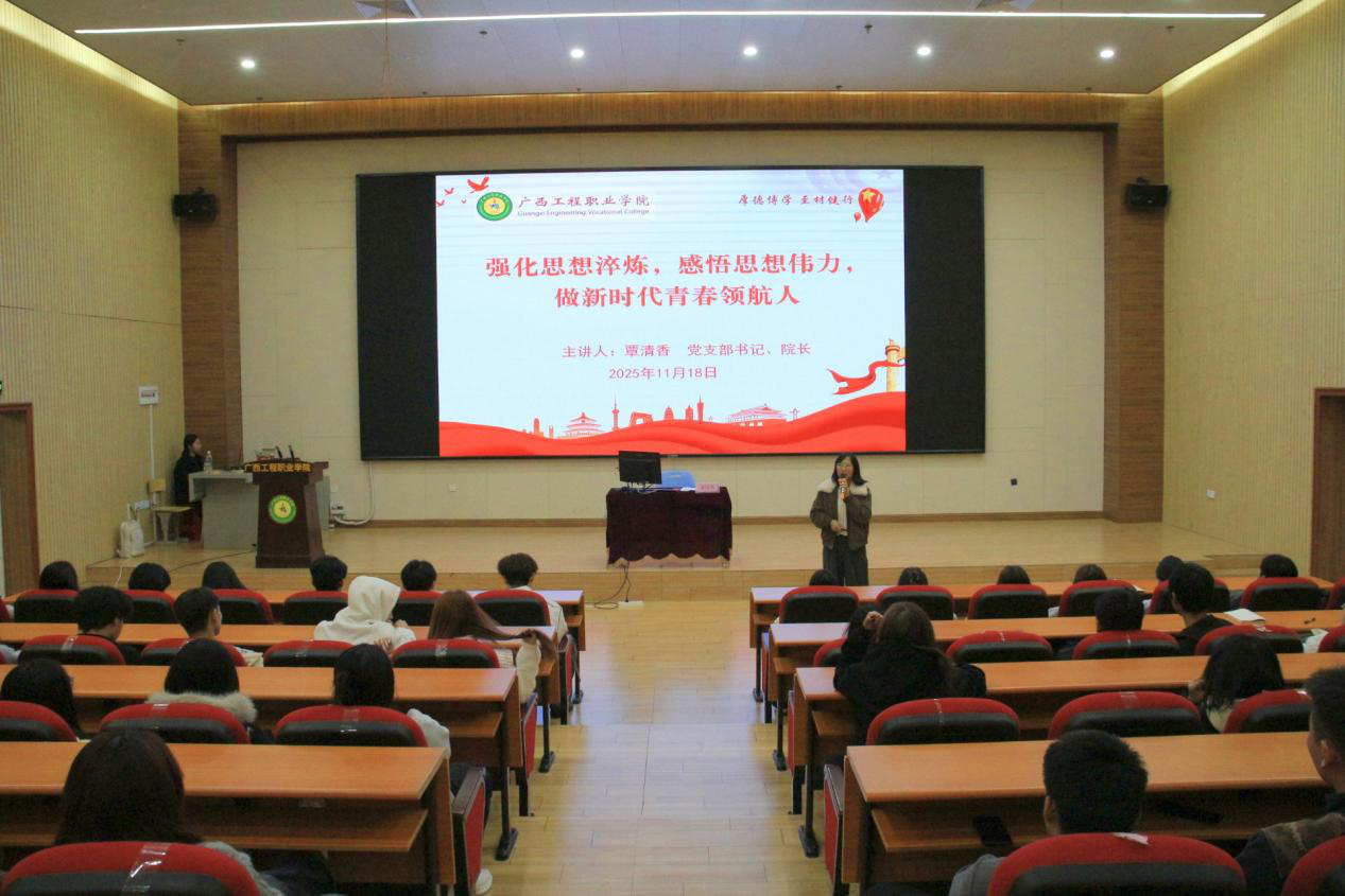 學(xué)校黨委副書記黃秋霞以《傳承紅色基因?挺膺青春使命 —— 新時代學(xué)生干部的思政引領(lǐng)與實干擔(dān)當(dāng)》為題,為第十六期學(xué)生干部培訓(xùn)班精準(zhǔn)賦能。培訓(xùn)中,黃副書記深耕廣西本土紅色沃土,通過講解百色起義等震撼人心的革命歷史、介紹相關(guān)紅色遺址,深刻闡釋了紅色基因中 “忠誠擔(dān)當(dāng)、艱苦奮斗、創(chuàng)新進(jìn)取” 的核心內(nèi)涵,緊扣學(xué)生干部成長需求,聚焦思政素養(yǎng)培育與實干擔(dān)當(dāng)實踐兩大關(guān)鍵,還深度融入黨的二十屆四中全會精神,幫助學(xué)員在時代大局中找準(zhǔn)定位。同時,她以習(xí)近平總書記對青年的殷切寄語為指引,結(jié)合黃文秀扎根脫貧一線、紅旗渠建設(shè)者戰(zhàn)天斗地等榜樣事跡,結(jié)合學(xué)校校社共建、暑期 “三下鄉(xiāng)” 等鮮活實踐案例,號召學(xué)員要做紅色信仰的踐行者、同學(xué)信賴的引領(lǐng)者、使命擔(dān)當(dāng)?shù)南刃姓?。黃副書記寄語全體學(xué)員,要以榜樣精神為燈、以全會精神為帆,把培訓(xùn)所學(xué)轉(zhuǎn)化為實干動力,在實踐中錘煉過硬本領(lǐng)、踐行青春使命,努力成長為既能扛事、又肯干事的新時代優(yōu)秀學(xué)生骨干,為學(xué)校高質(zhì)量發(fā)展貢獻(xiàn)智慧青春力量,讓青春在全面建設(shè)社會主義現(xiàn)代化國家的火熱實踐中綻放絢麗光彩。