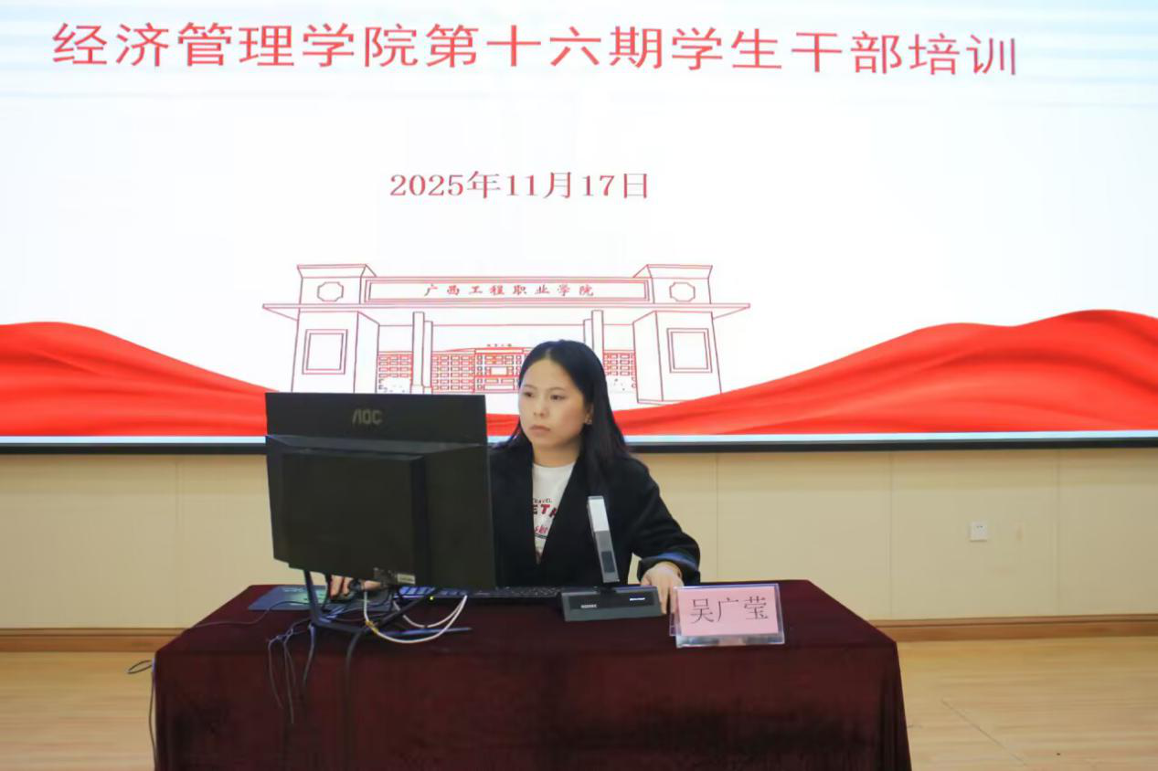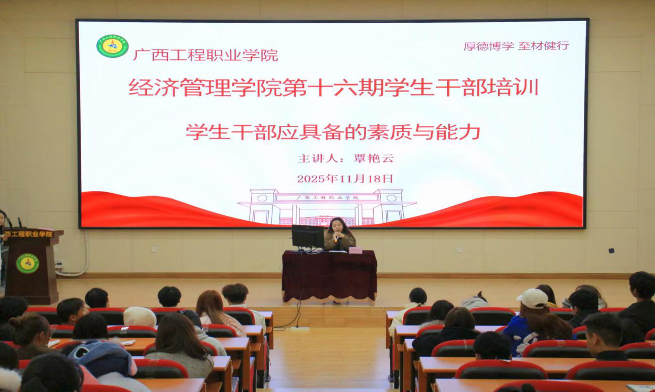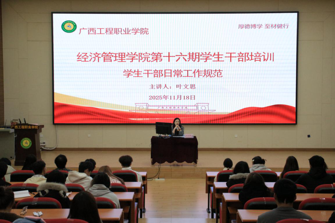 為進(jìn)一步筑牢學(xué)生干部的全局意識、服務(wù)意識、責(zé)任意識、效率意識與創(chuàng)新意識,強(qiáng)化學(xué)生干部隊伍的凝聚力和戰(zhàn)斗力,夯實學(xué)院團(tuán)學(xué)組織規(guī)范化建設(shè)基礎(chǔ),提升學(xué)生干部的思想政治素養(yǎng)與綜合業(yè)務(wù)能力,促進(jìn)學(xué)生德育發(fā)展與工作管理效能提升,全面推進(jìn)學(xué)院德育工作高質(zhì)量開展,廣西工程職業(yè)學(xué)院經(jīng)濟(jì)管理學(xué)院于 2025 年 11 月 17 日至 12月 12日舉辦第十六期學(xué)生干部培訓(xùn)班。
