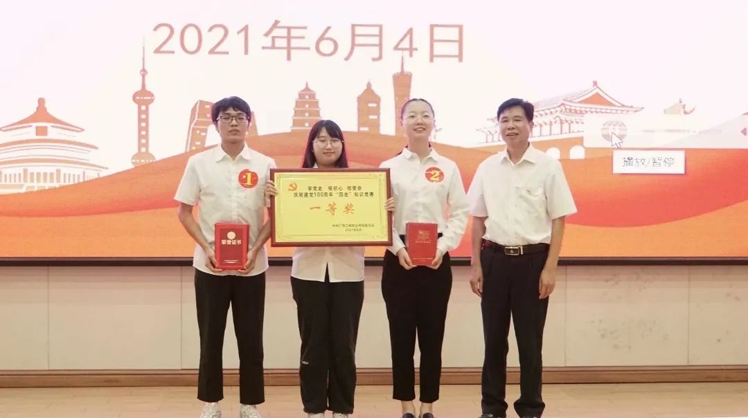 6月4日晚,學(xué)校在圖文信息大樓一樓學(xué)術(shù)報(bào)告廳舉行“學(xué)黨史 銘初心 擔(dān)使命——慶祝建黨100周年‘四史’知識(shí)競賽”。