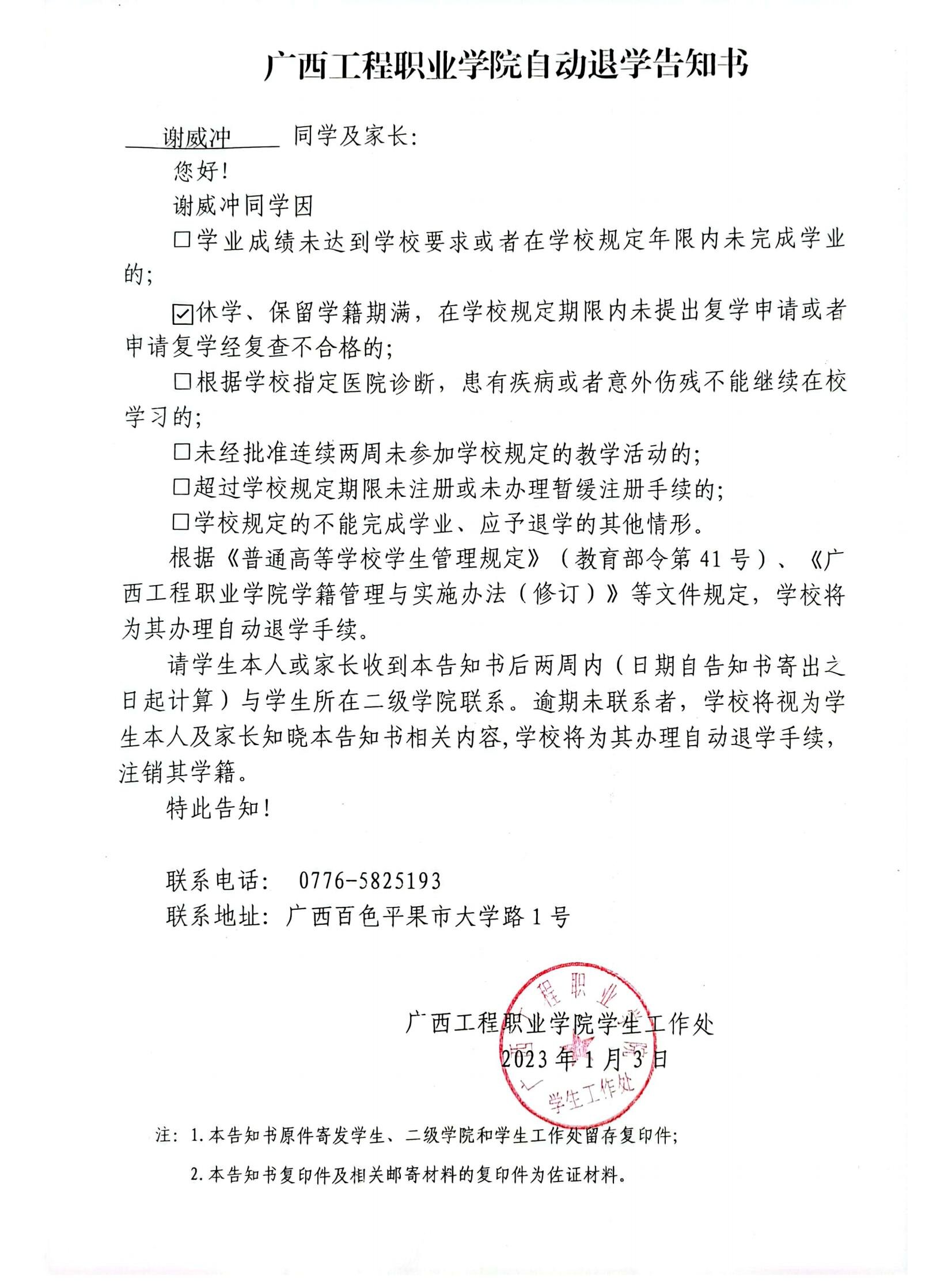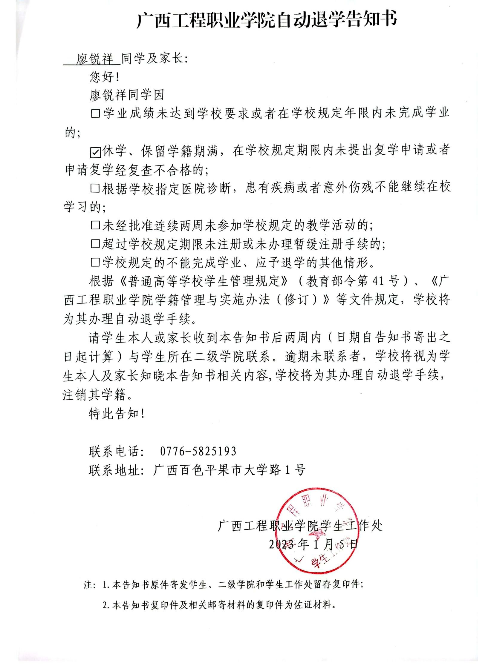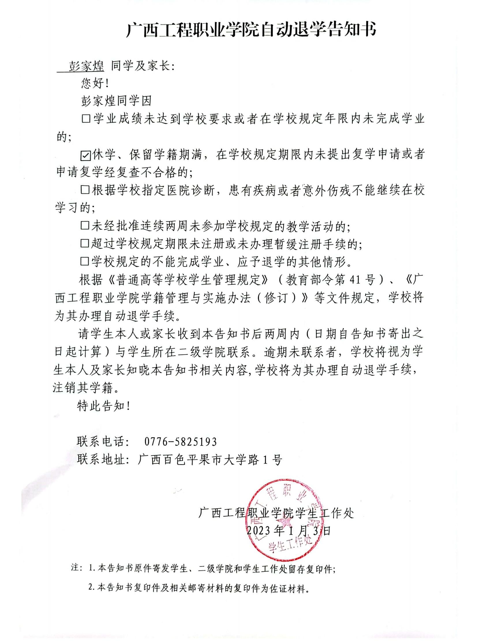 下一篇:廣西工程職業(yè)學院自動退學告知書/經(jīng)濟管理學院