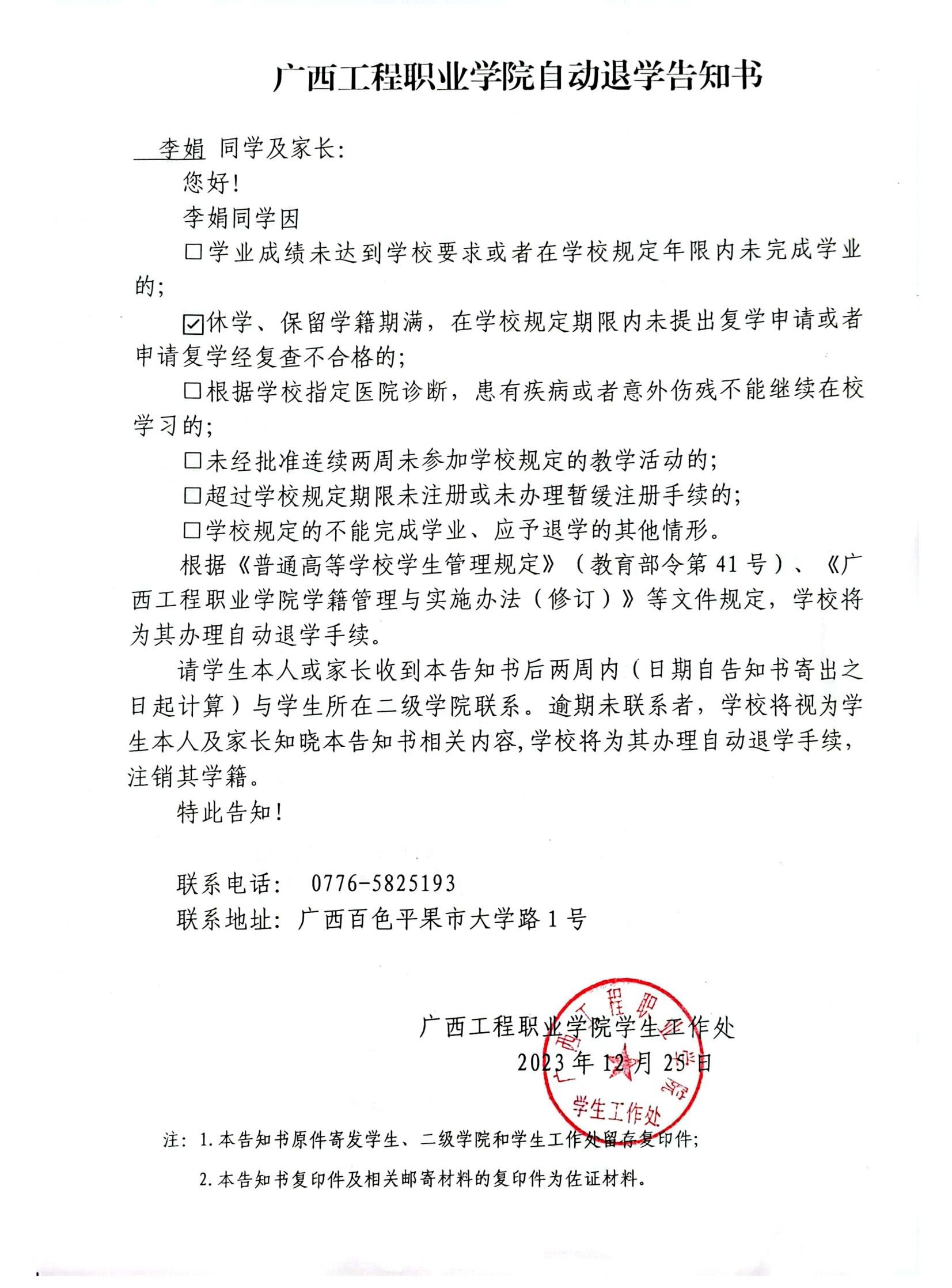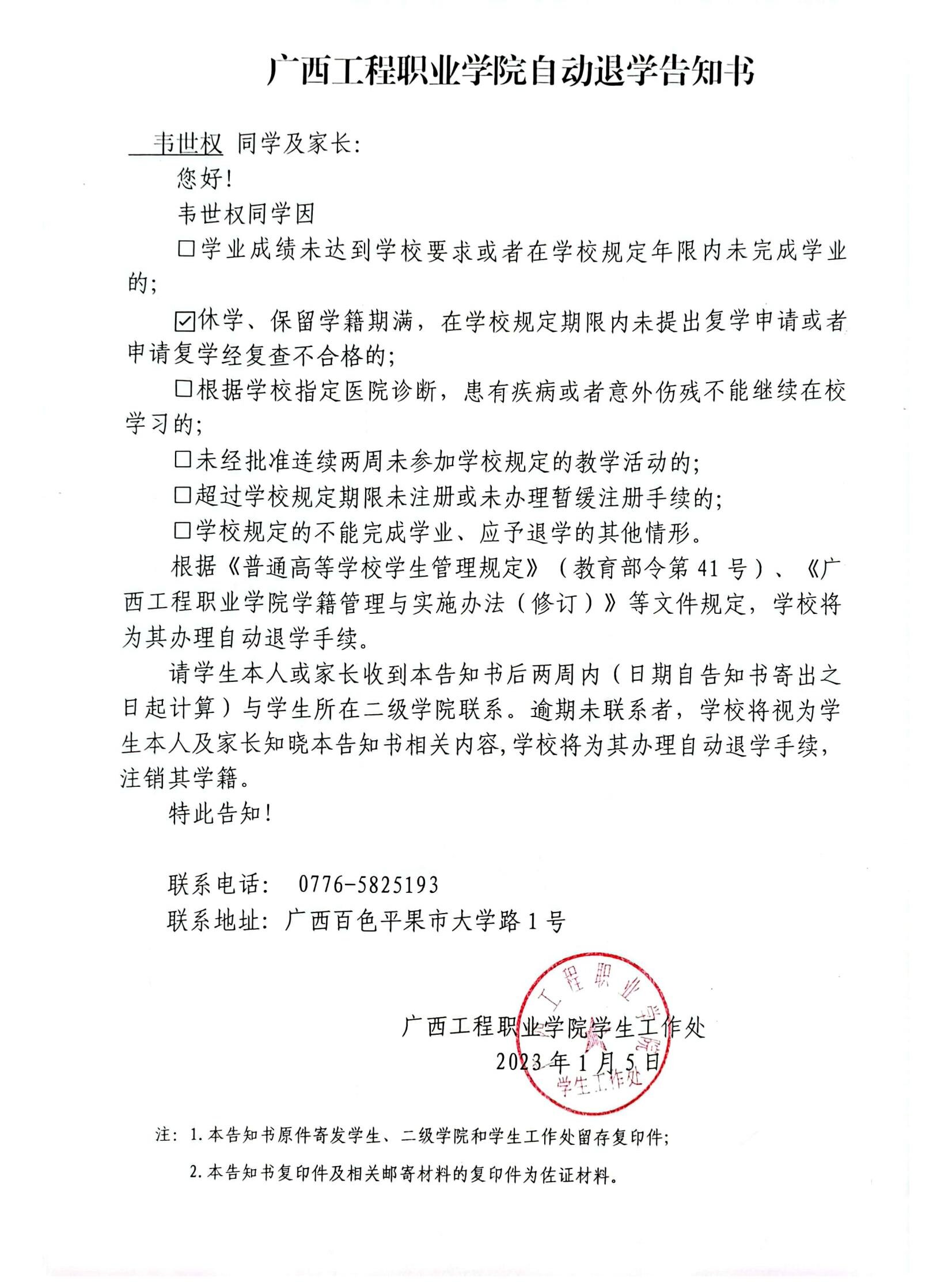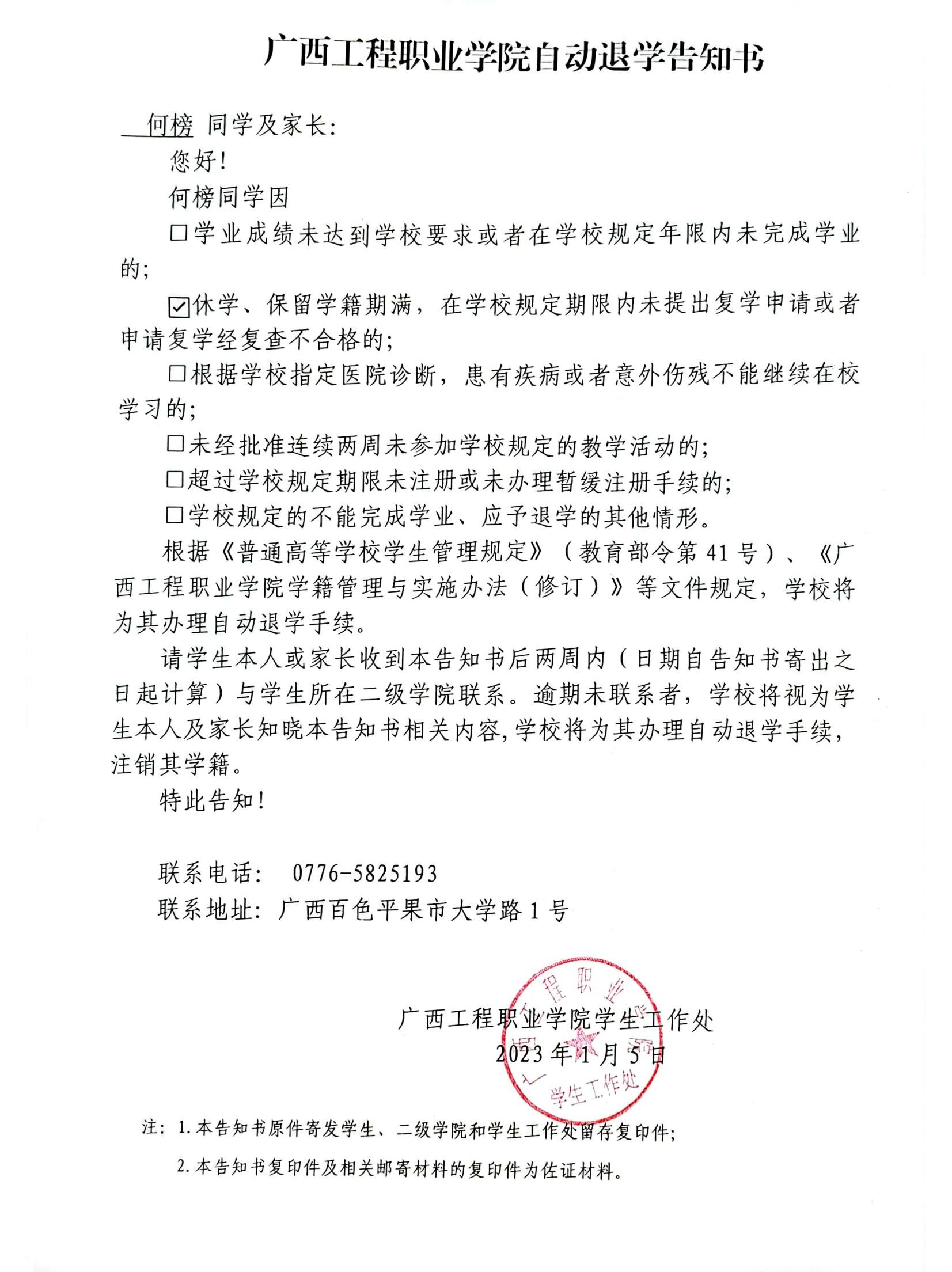 下一篇:廣西工程職業(yè)學院自動退學告知書/經(jīng)濟管理學院